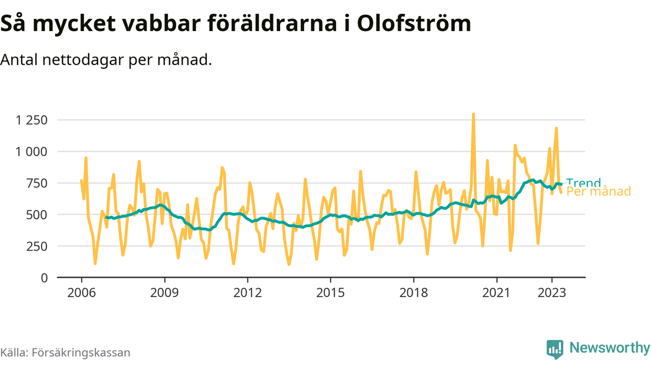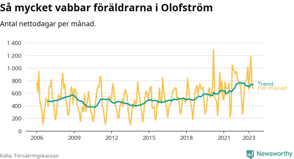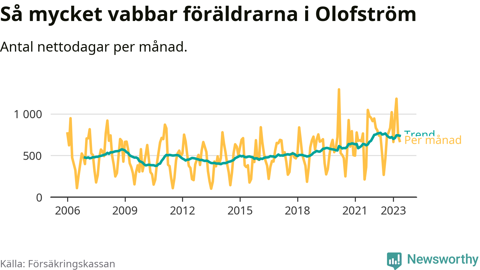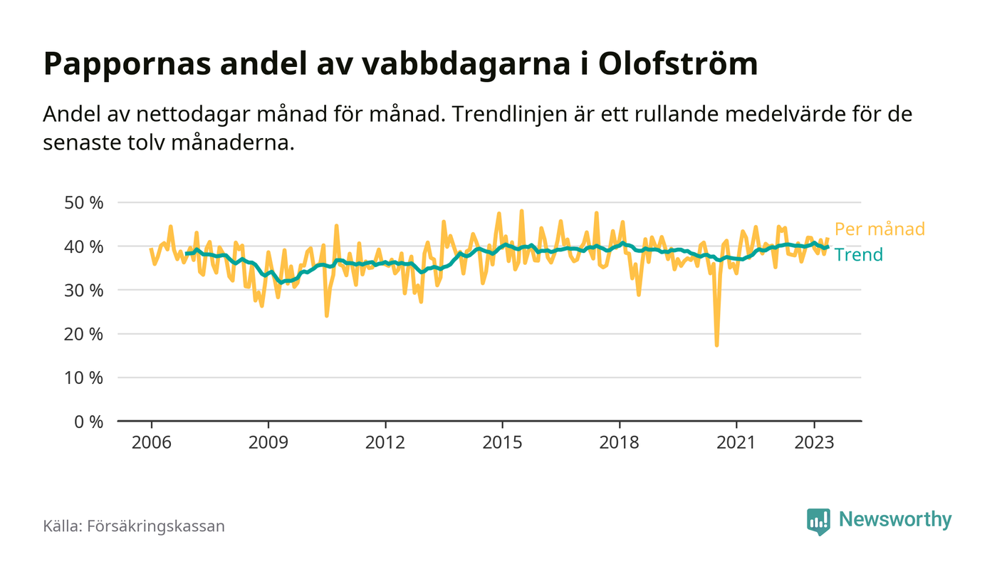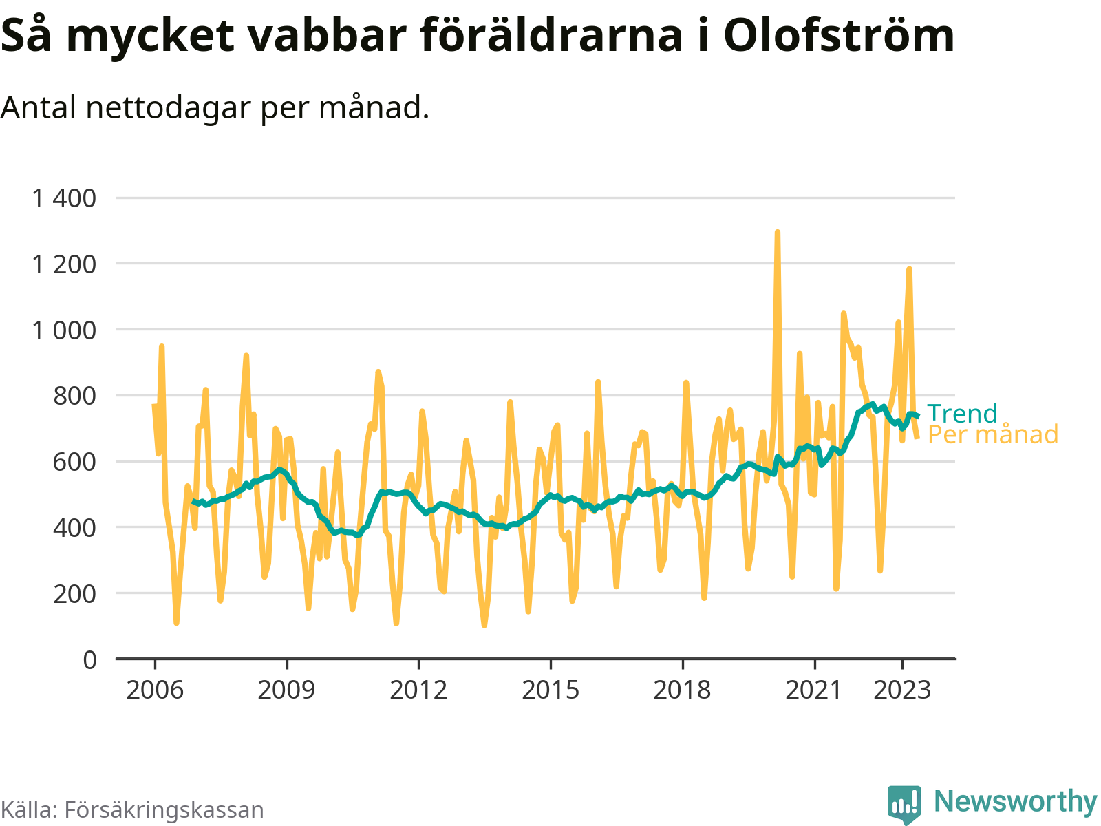 I Olofströms kommun peakade pappornas uttag vintern 2023 då kommunens fäder var uppe i 41 procent av vabbdagarna 1. Under de senaste tolv månaderna har männen stått för 40 procent av vabb i kommunen.