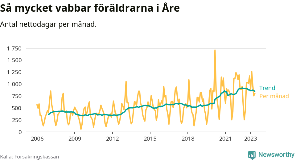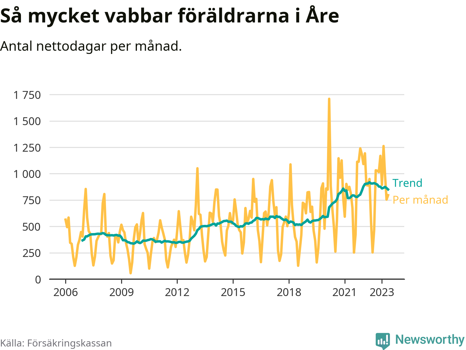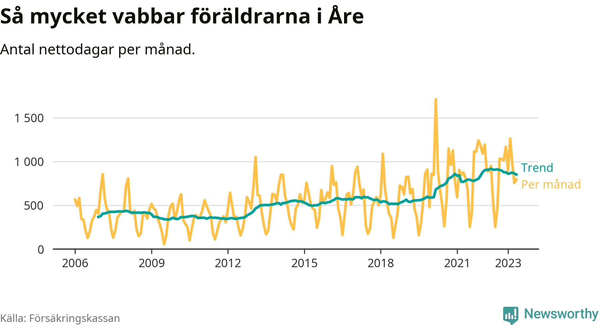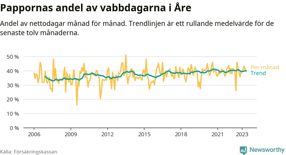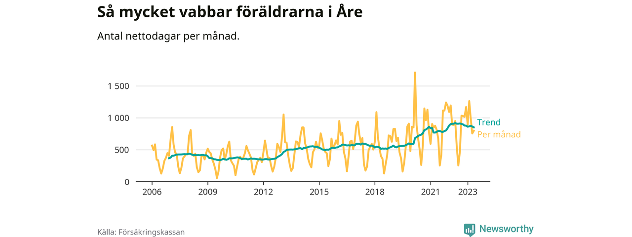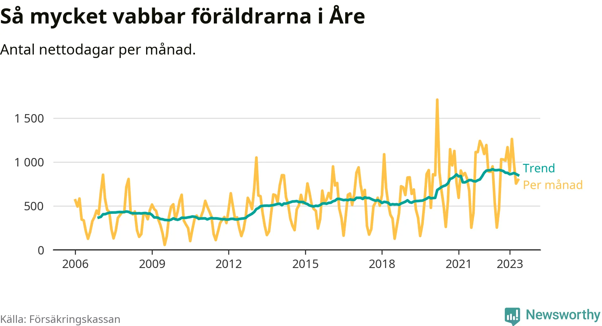 I Åre kommun peakade pappornas uttag hösten 2020 då kommunens fäder var uppe i 41 procent av vabbdagarna 1. Under de senaste tolv månaderna har männen stått för 40 procent av vabb i kommunen.