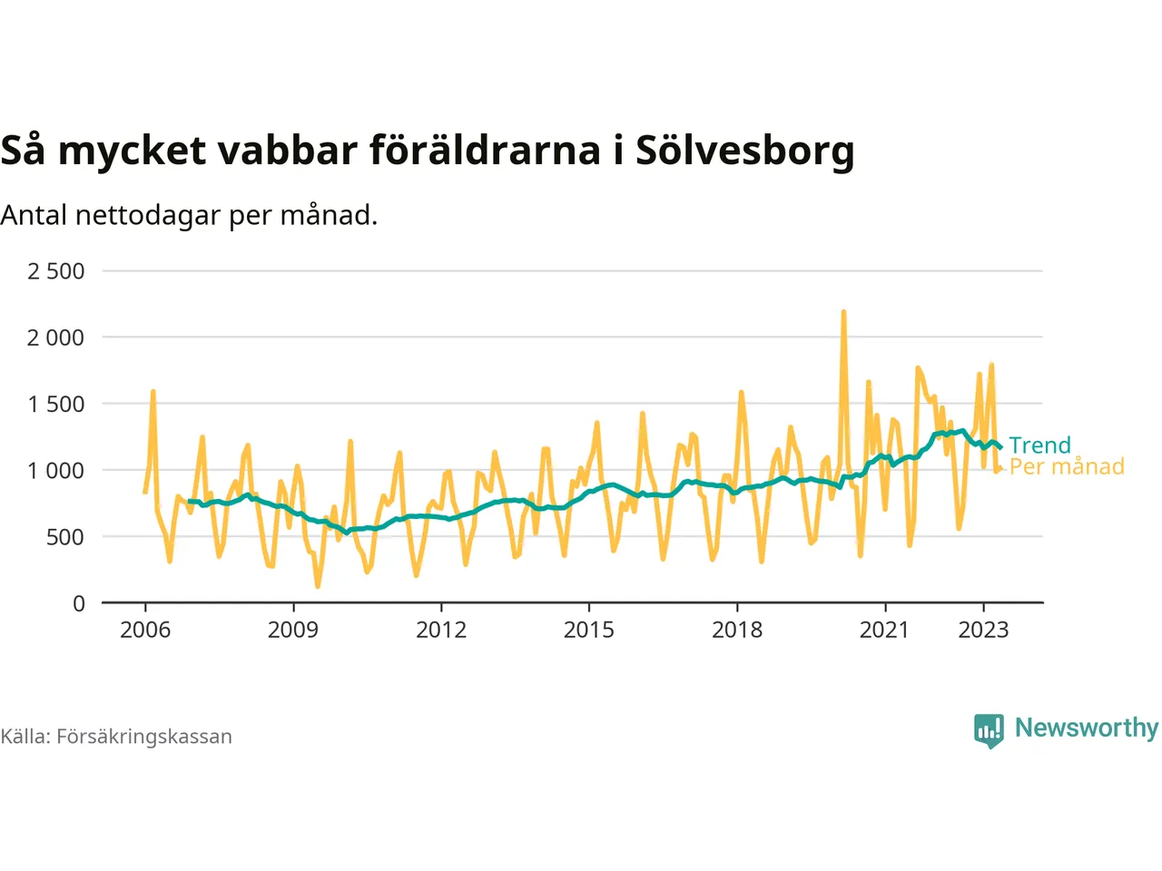 En annan trend är föräldrar generellt vabbar mer nu än tidigare. Sedan slutet av 00-talet har vabbuttaget nästan fördubblats i riket som helhet.
