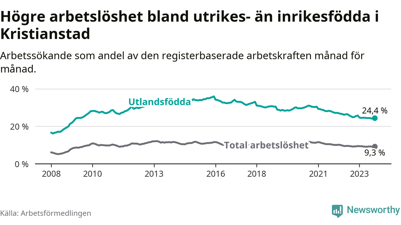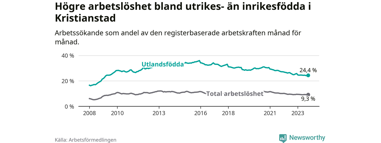 Läs mer om arbetslösheten bland utlandsfödda längre ner i den här texten.