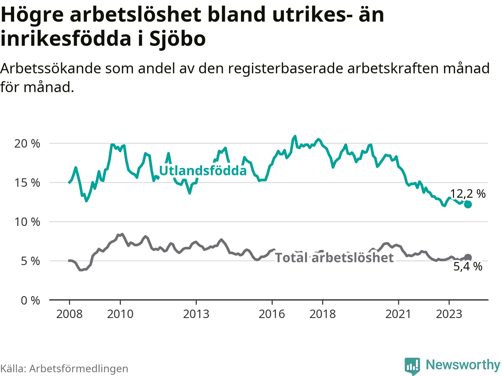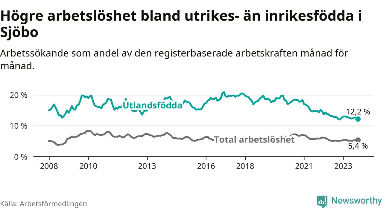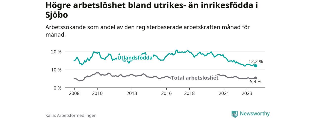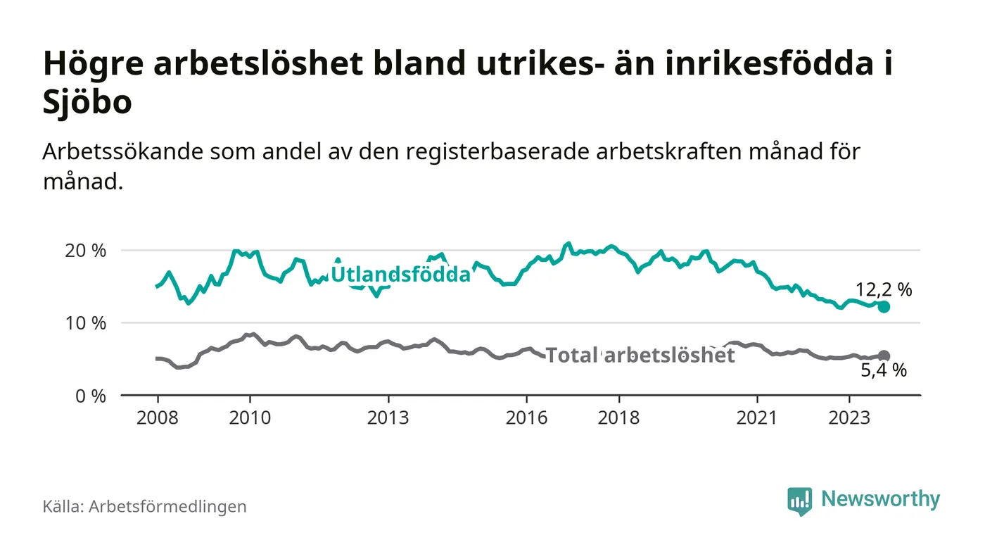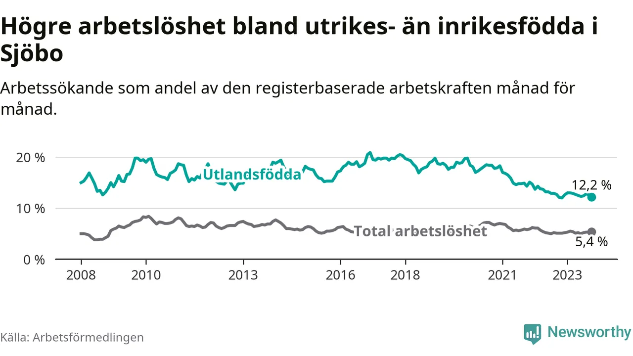 Läs mer om arbetslösheten bland utlandsfödda längre ner i den här texten.