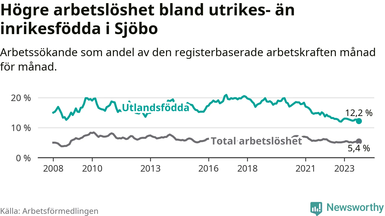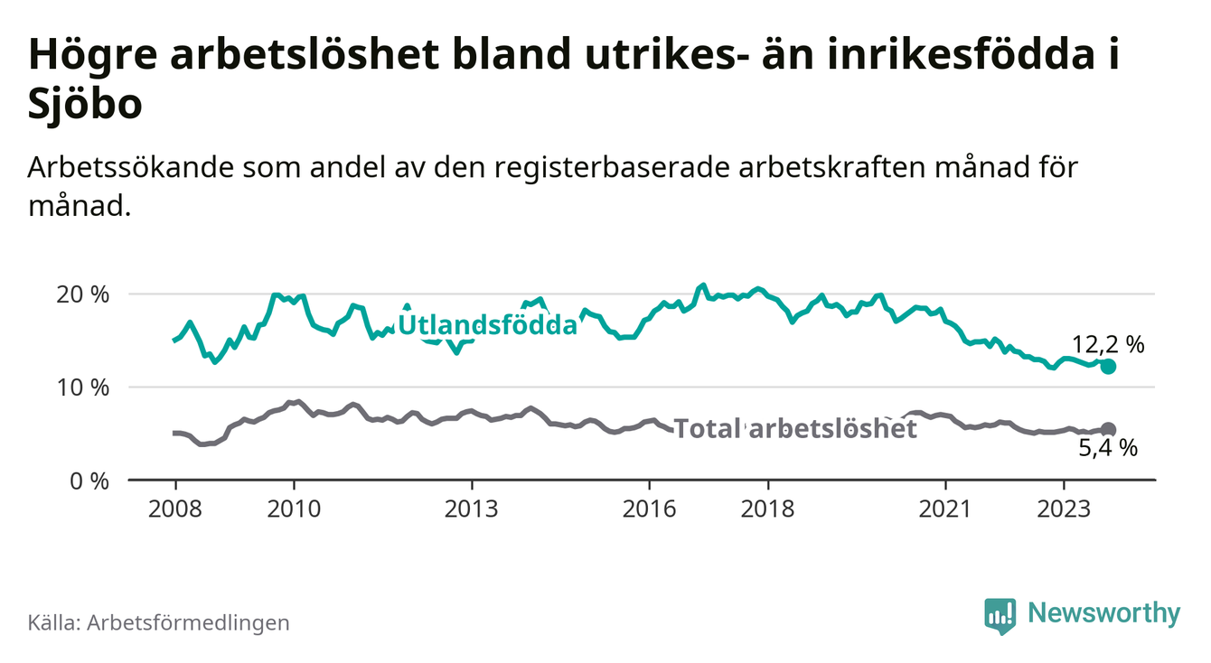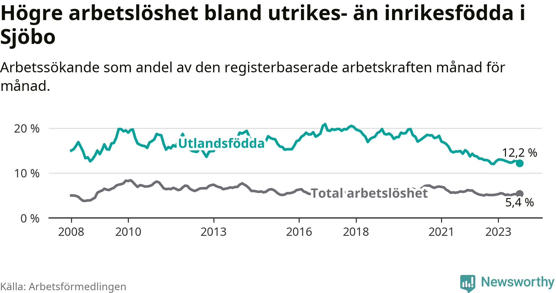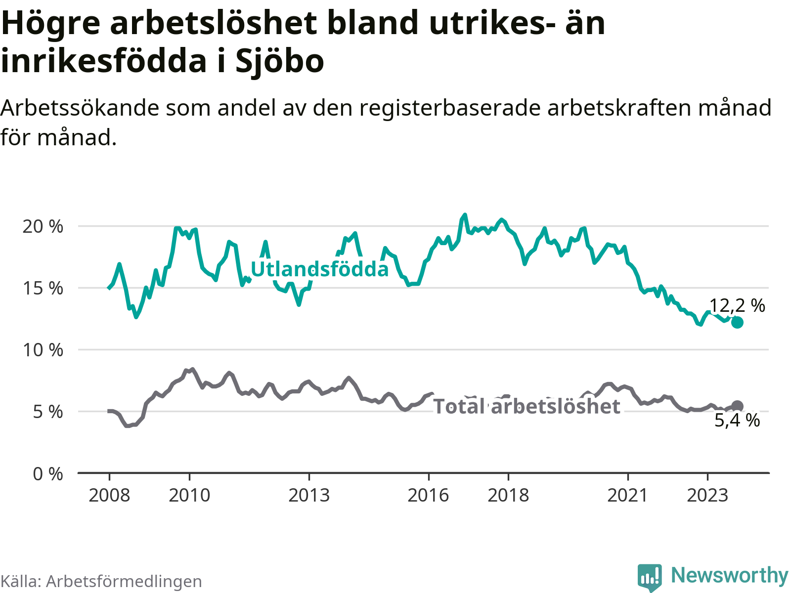 Läs mer om arbetslösheten bland utlandsfödda längre ner i den här texten.