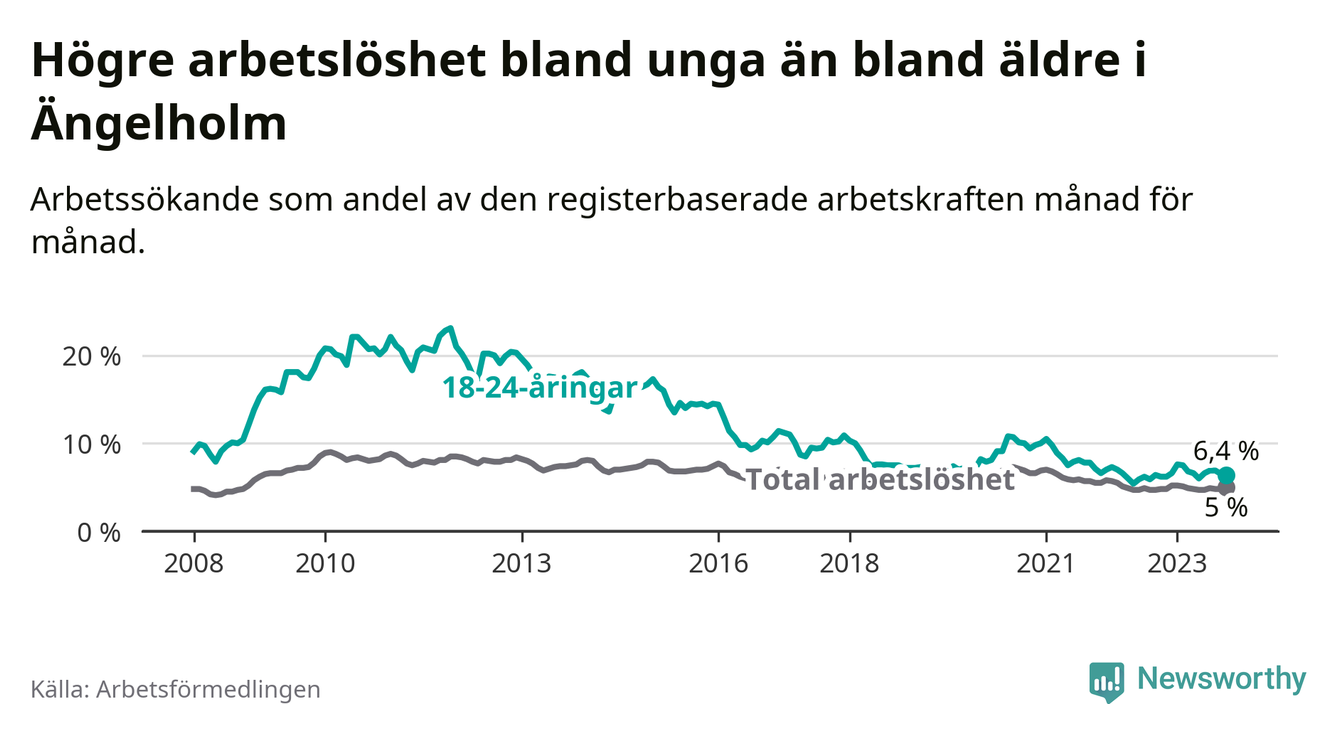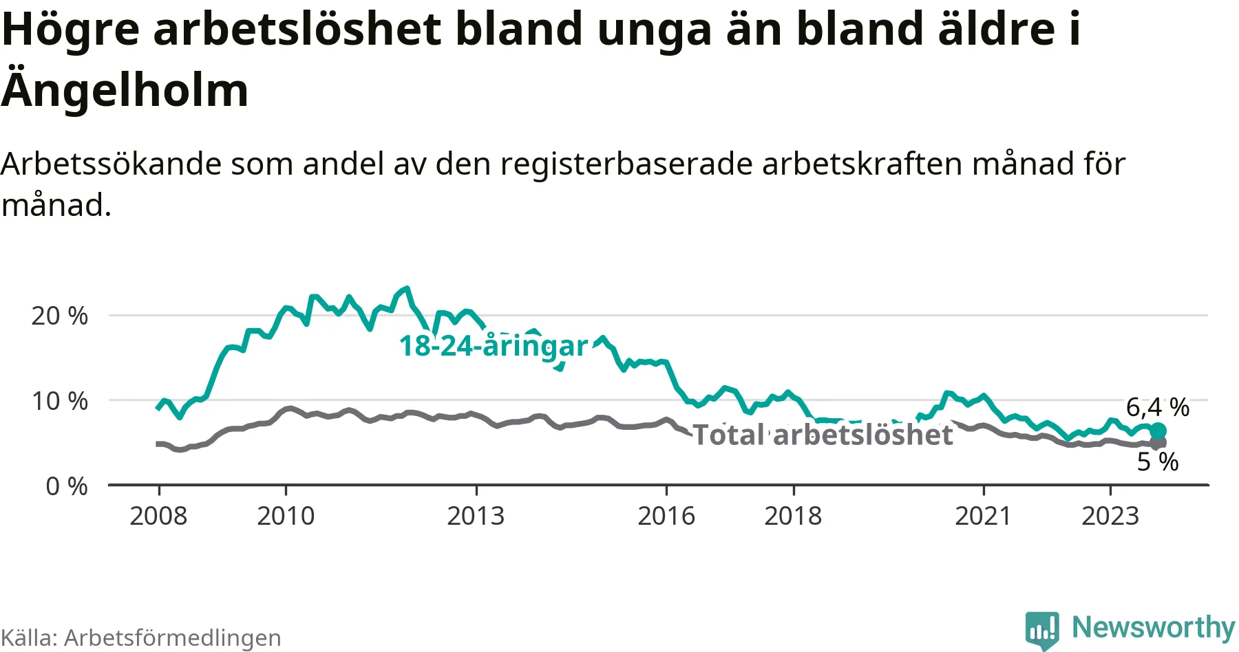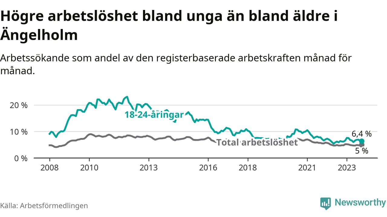 Graf: Arbetslöshet bland unga i Ängelholms kommun och Skåne län