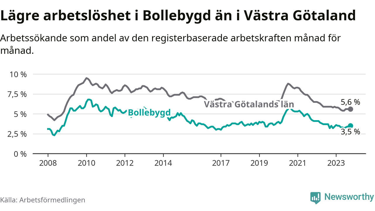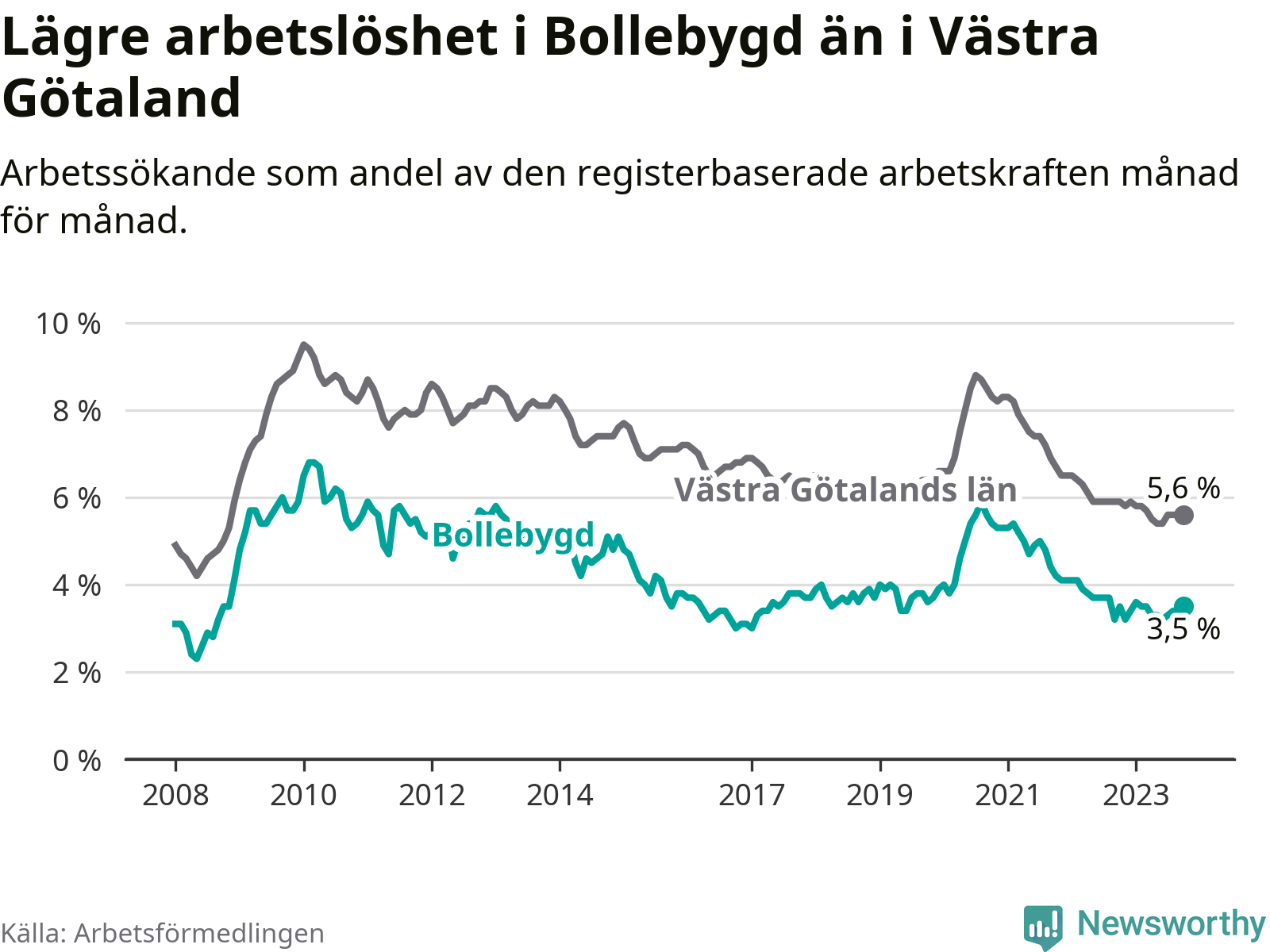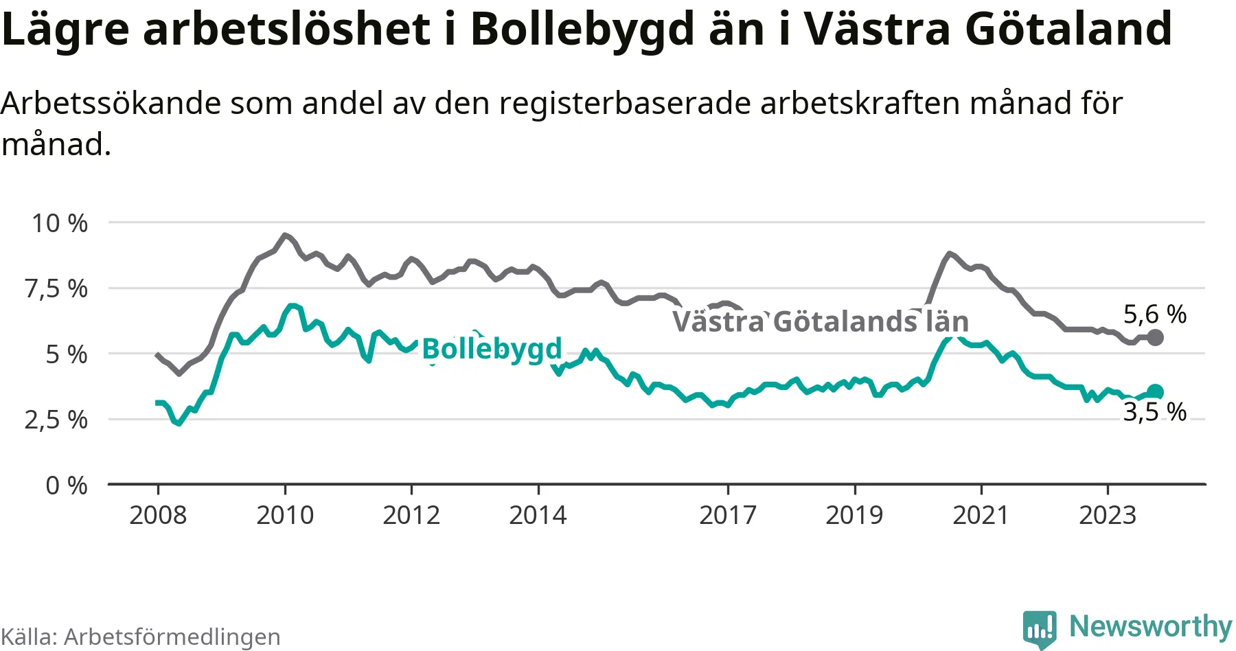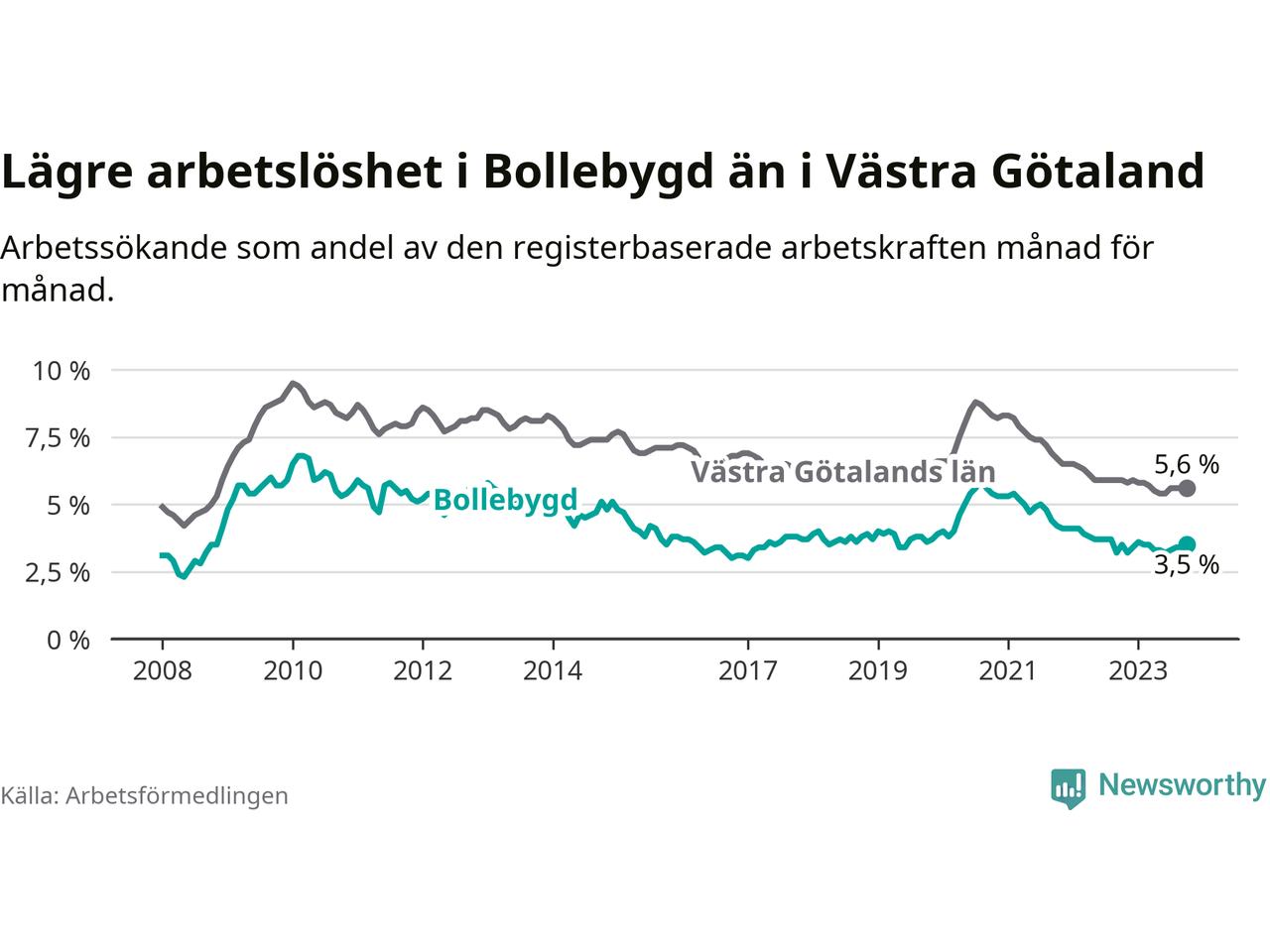 Graf: Arbetslöshet i Bollebygds kommun och Västra Götalands län