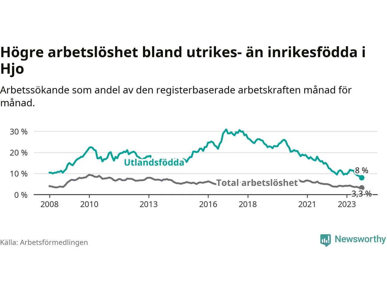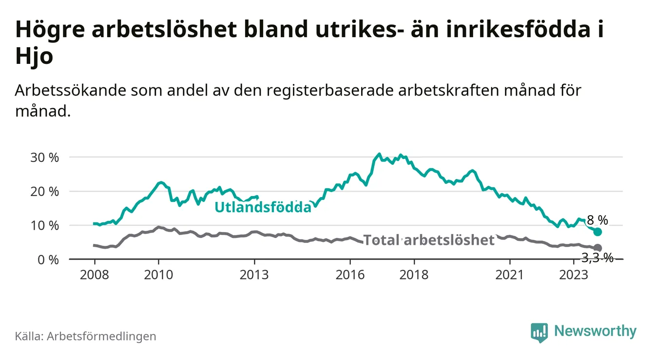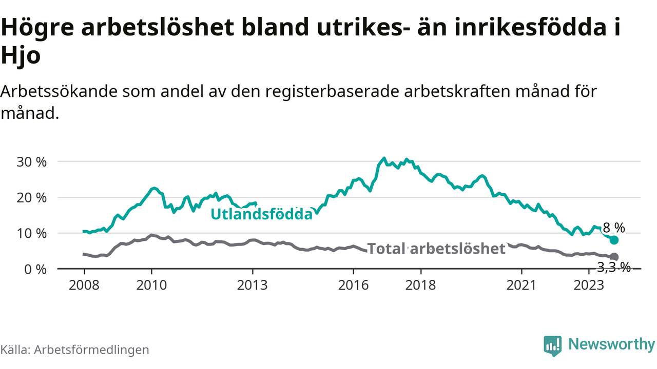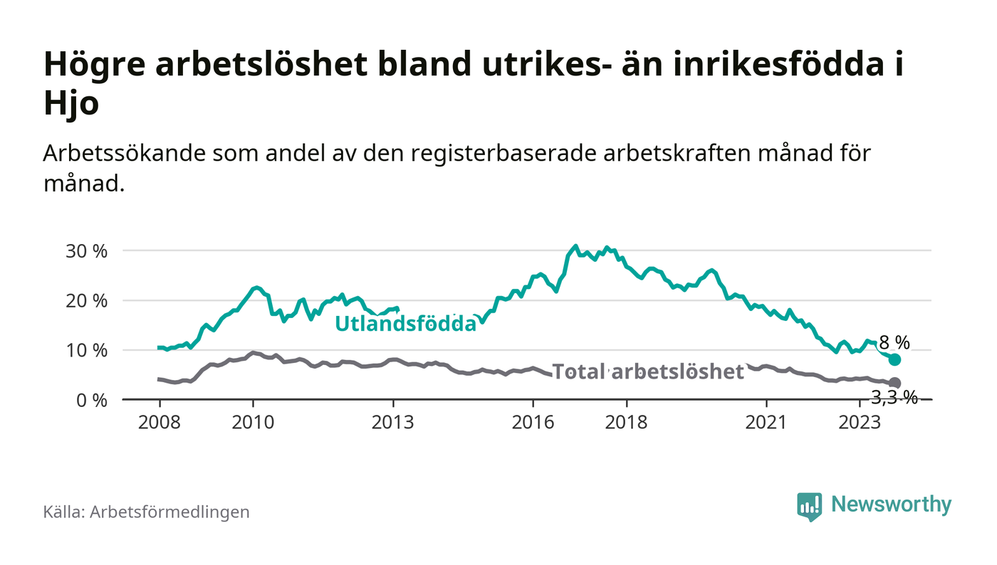 Läs mer om arbetslösheten bland utlandsfödda längre ner i den här texten.