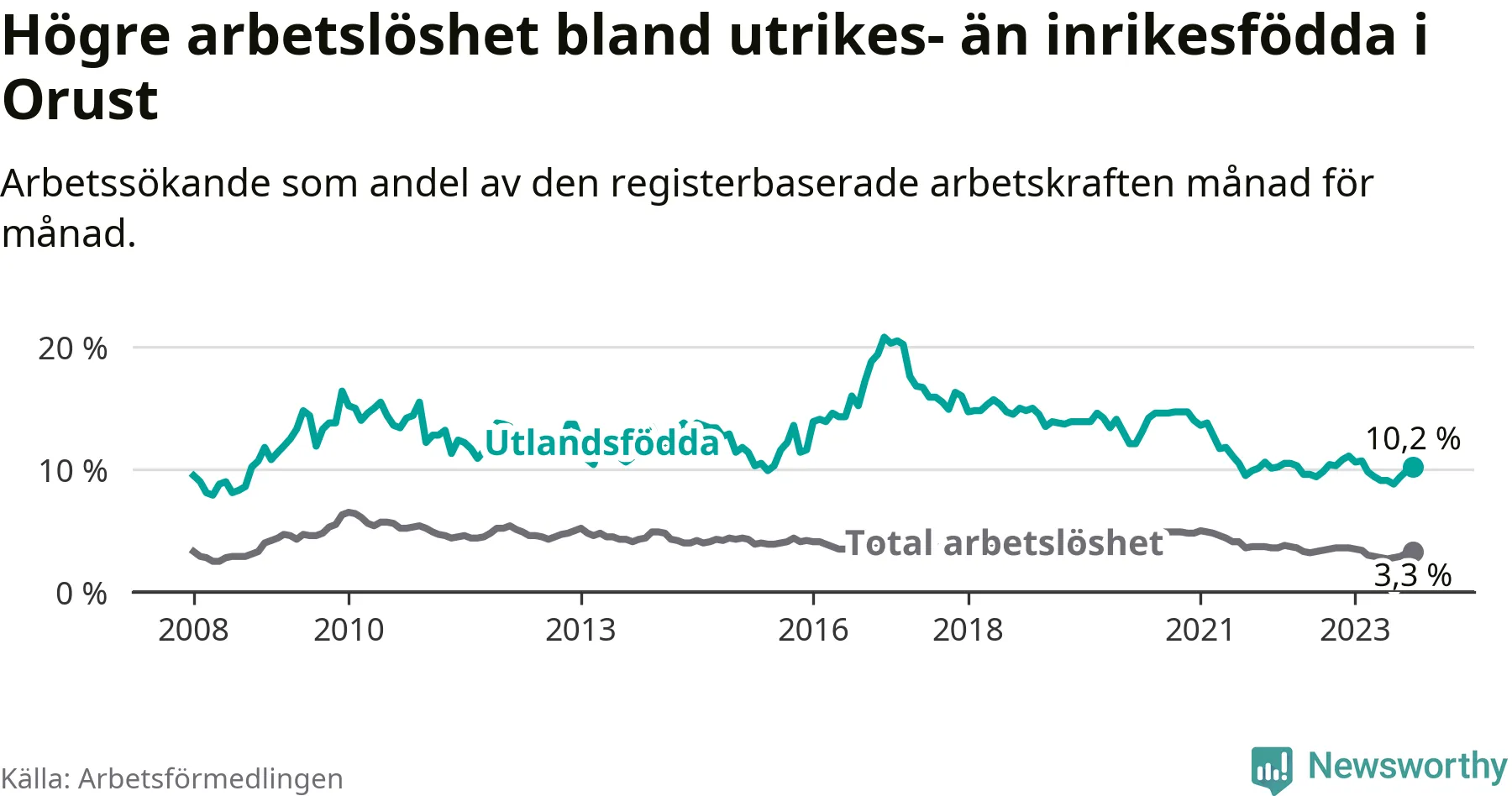 Bland utlandsfödda10,2 %−0,1 % 13,6 %−1,2 % 15,2 %−1,1 %