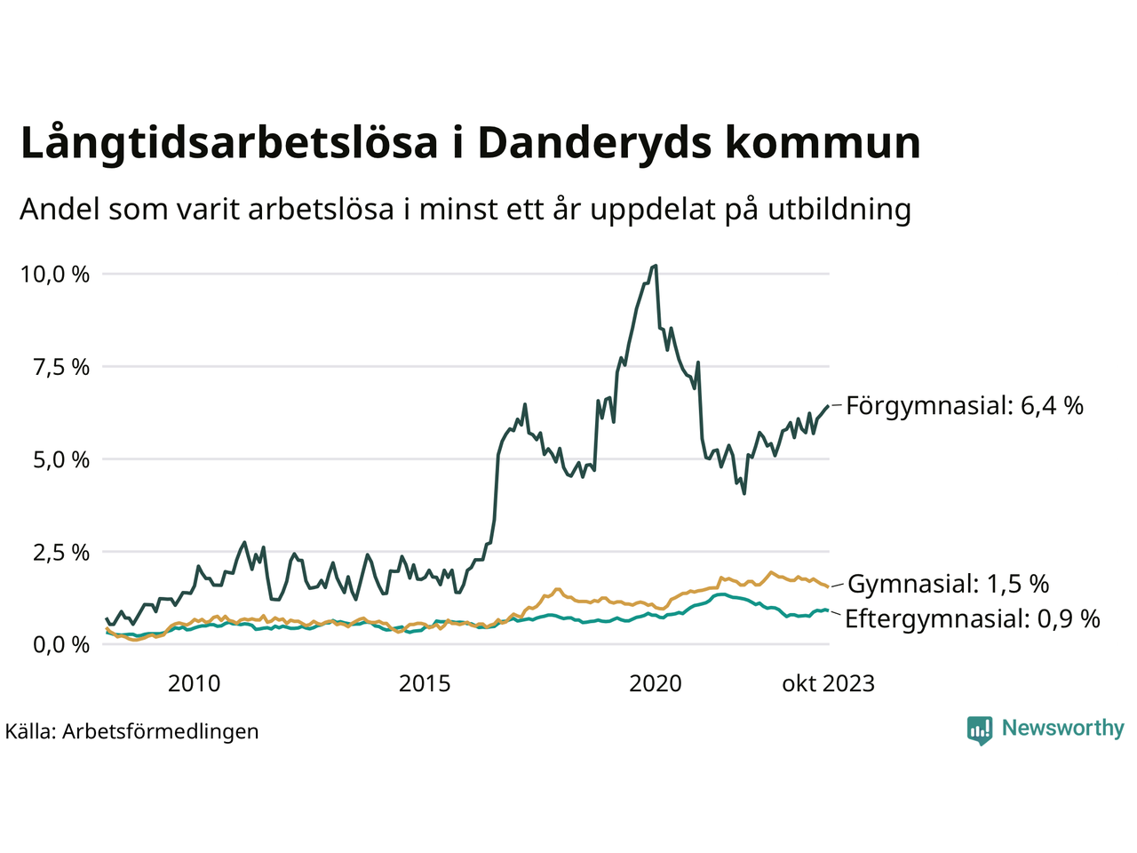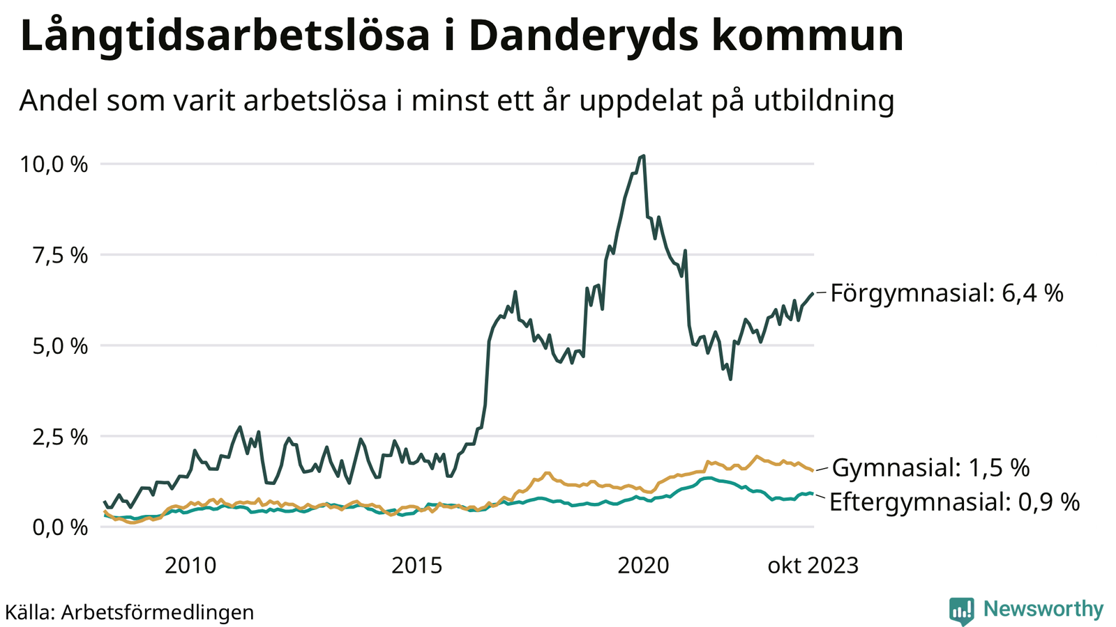 Andel arbetslösa i minst ett år | 1,3 % | 2,5 % | 2,6 % |