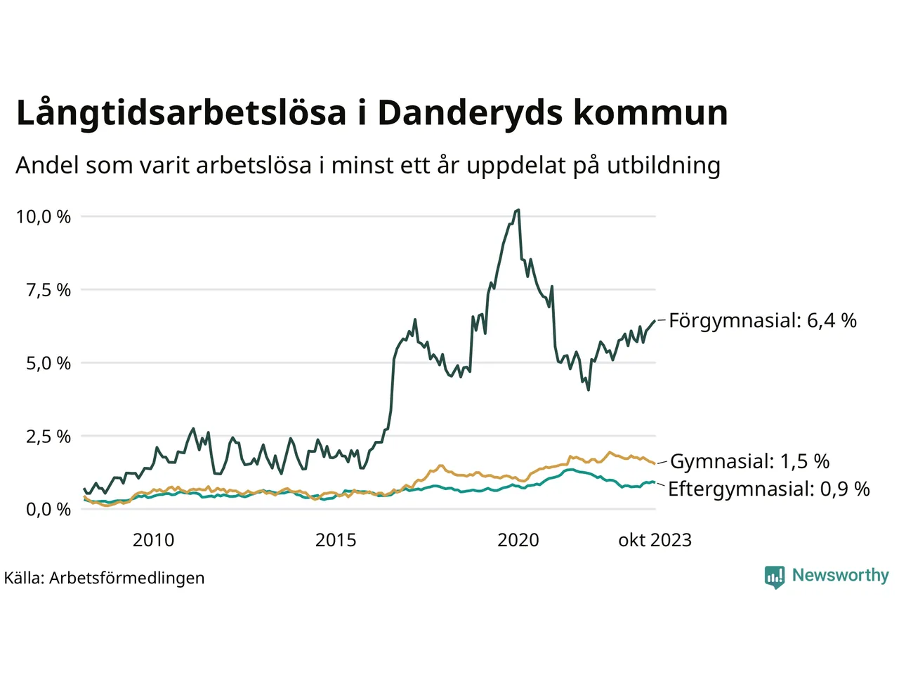 Bland dem utan gymnasieutbildning | 6,4 % | 8,7 % | 9,5 % |