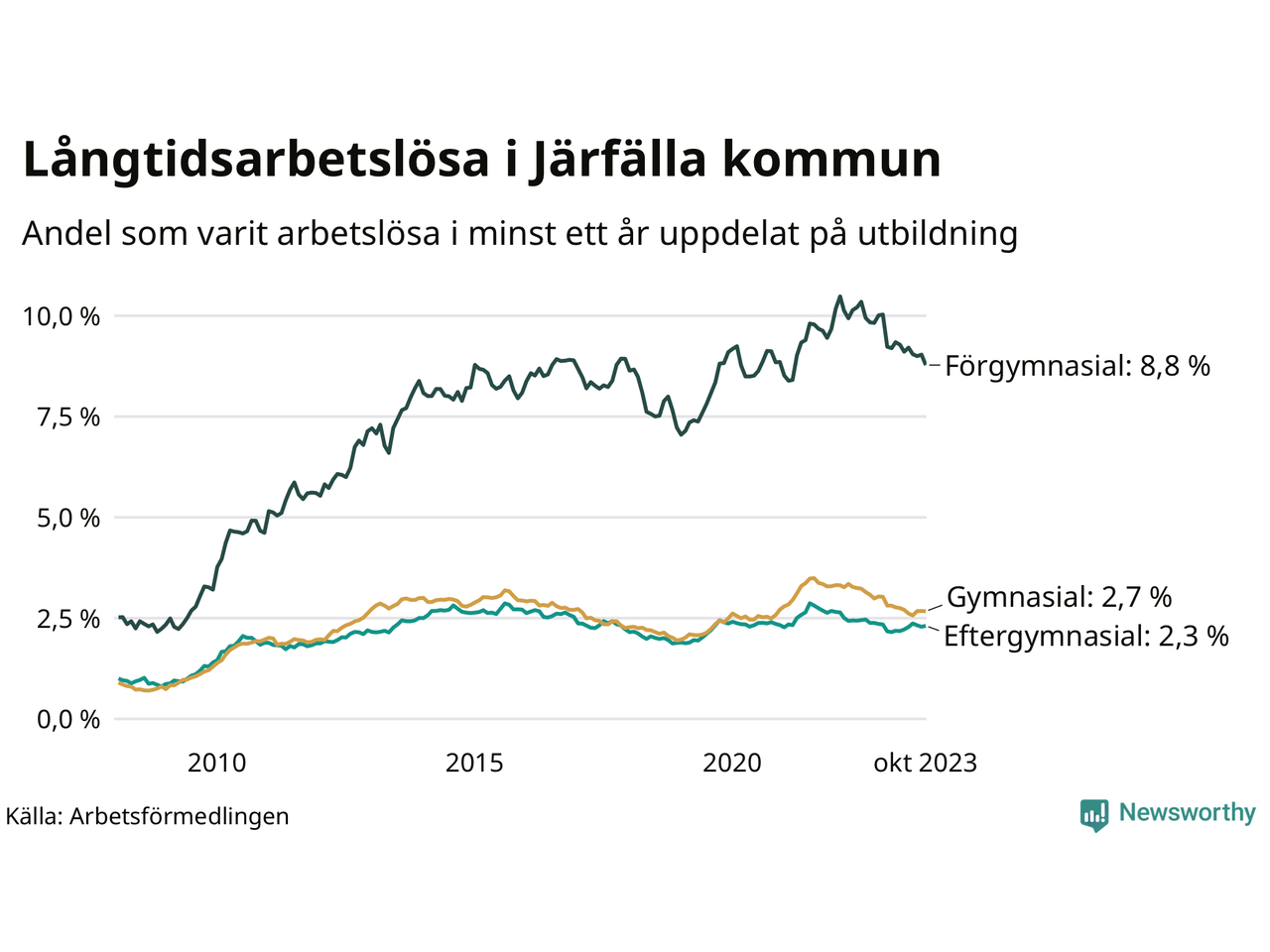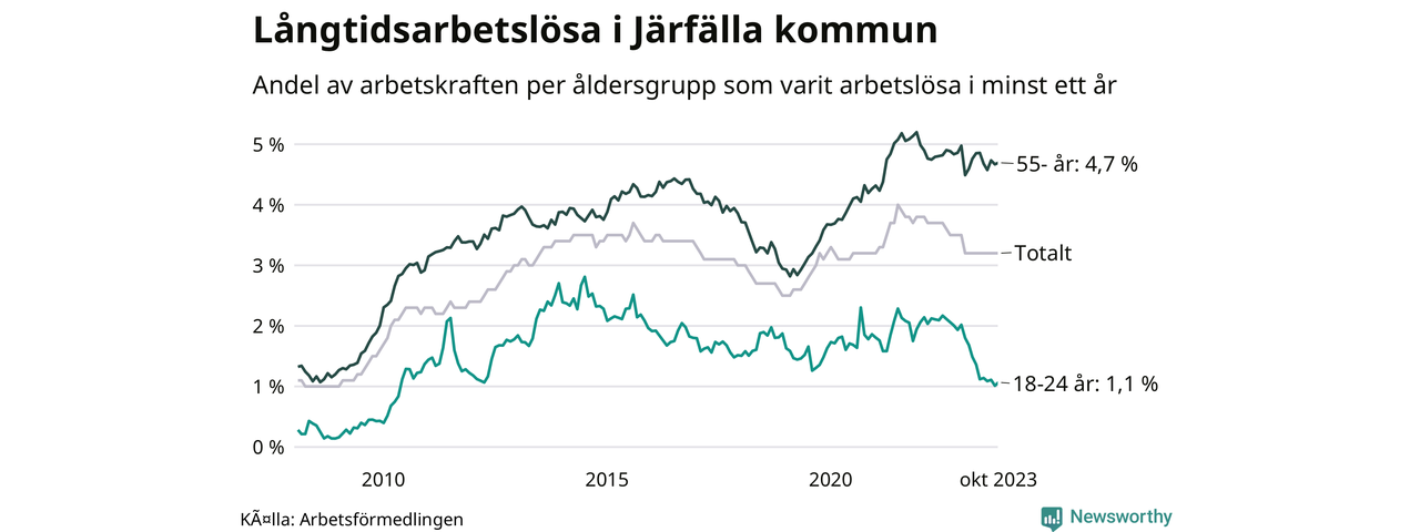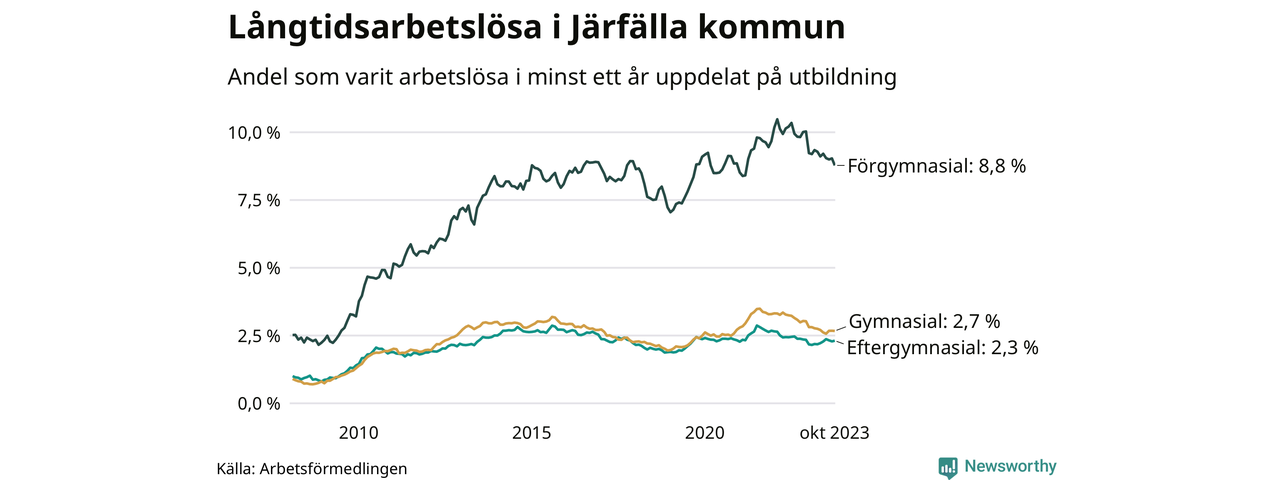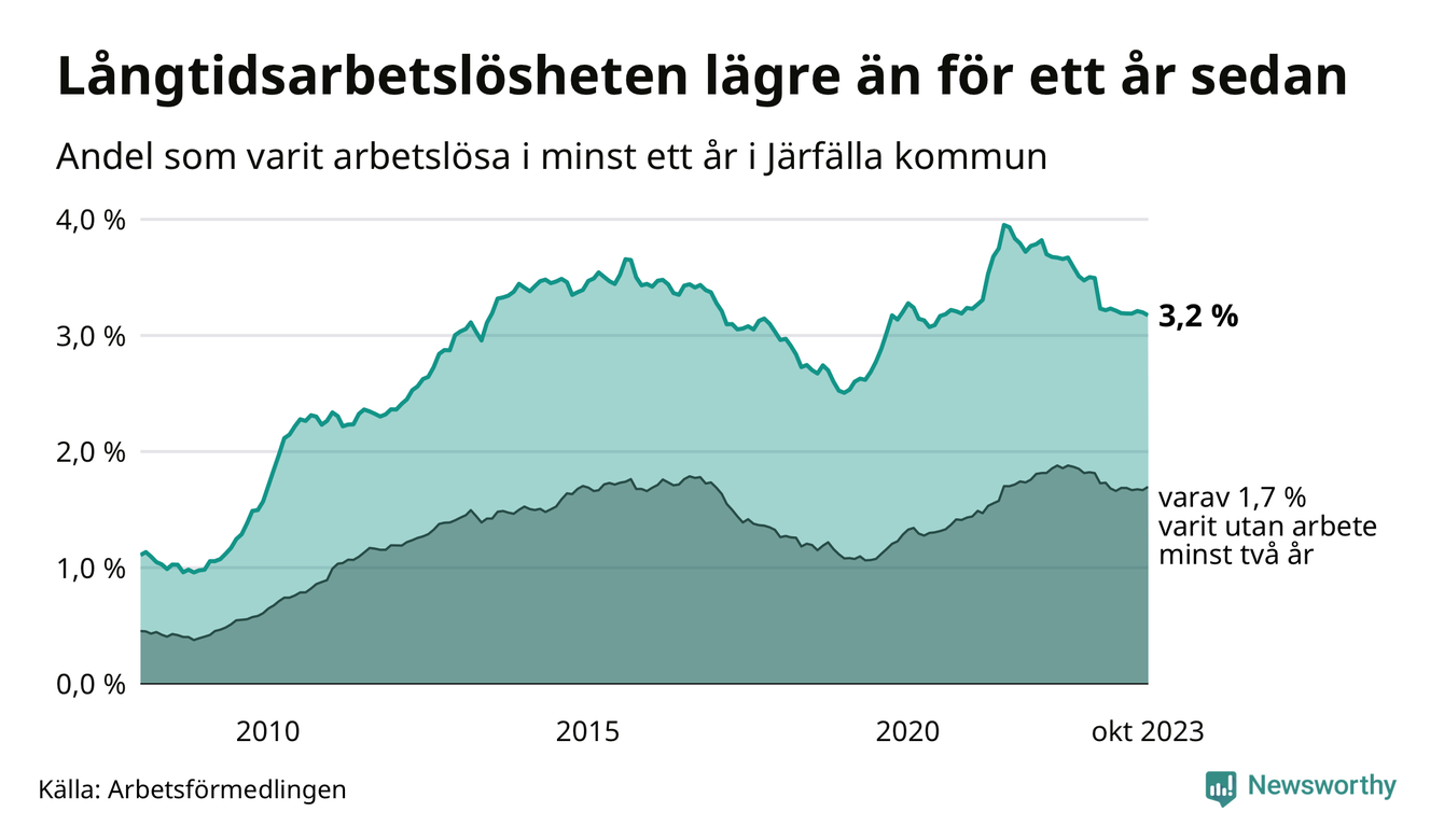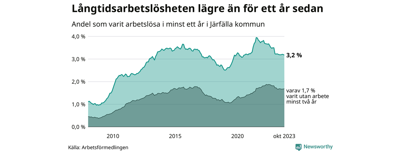 Långtidsarbetslöshet i Järfälla i oktober 2023