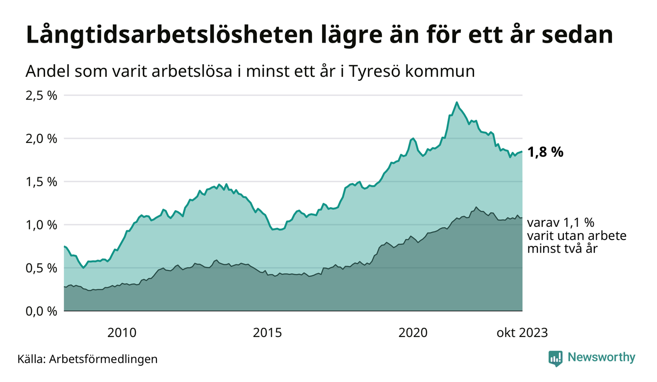 Långtidsarbetslöshet i Tyresö i oktober 2023