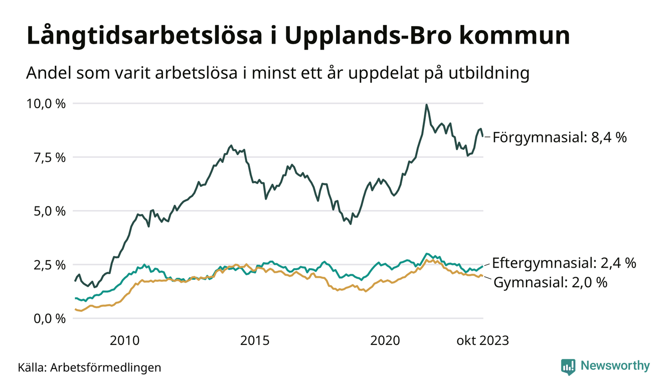 Bland dem utan gymnasieutbildning | 8,4 % | 8,7 % | 9,5 % |