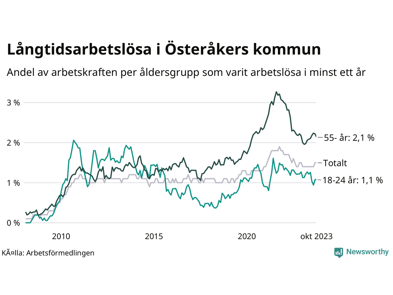 Andel arbetslösa i minst två år | 0,8 % | 1,5 % | 1,6 % |