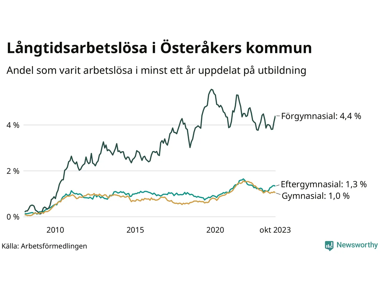 Bland dem utan gymnasieutbildning | 4,4 % | 8,7 % | 9,5 % |