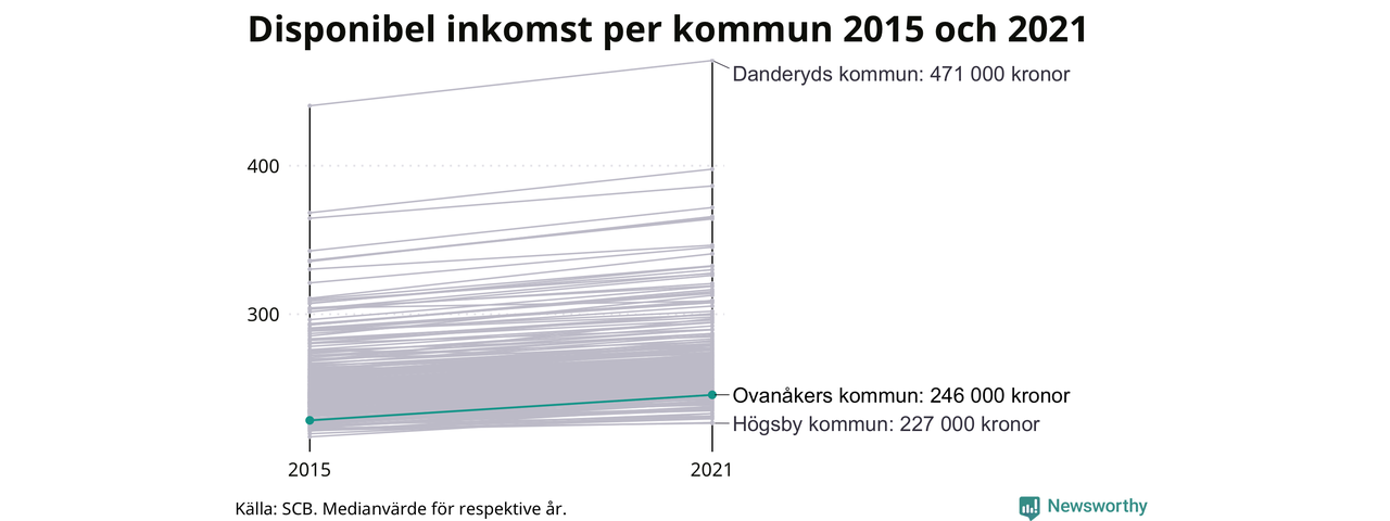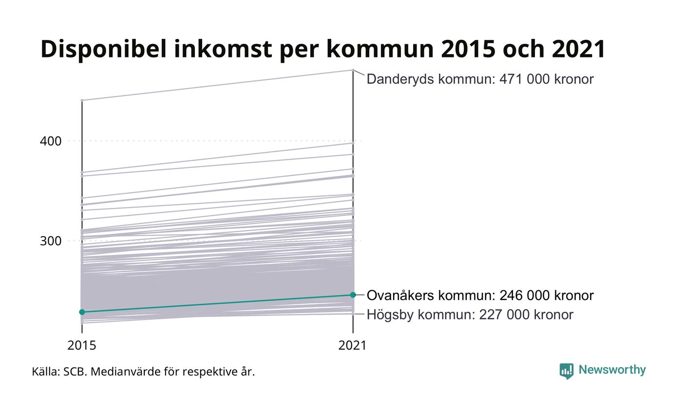 Medianinkomsten i Ovanåker som helhet var 246 000 kronor 2021, vilket är lägre än de flesta andra kommuner. Sedan 2015 har den disponibla inkomsten i kommunen ökat med 8 procent.