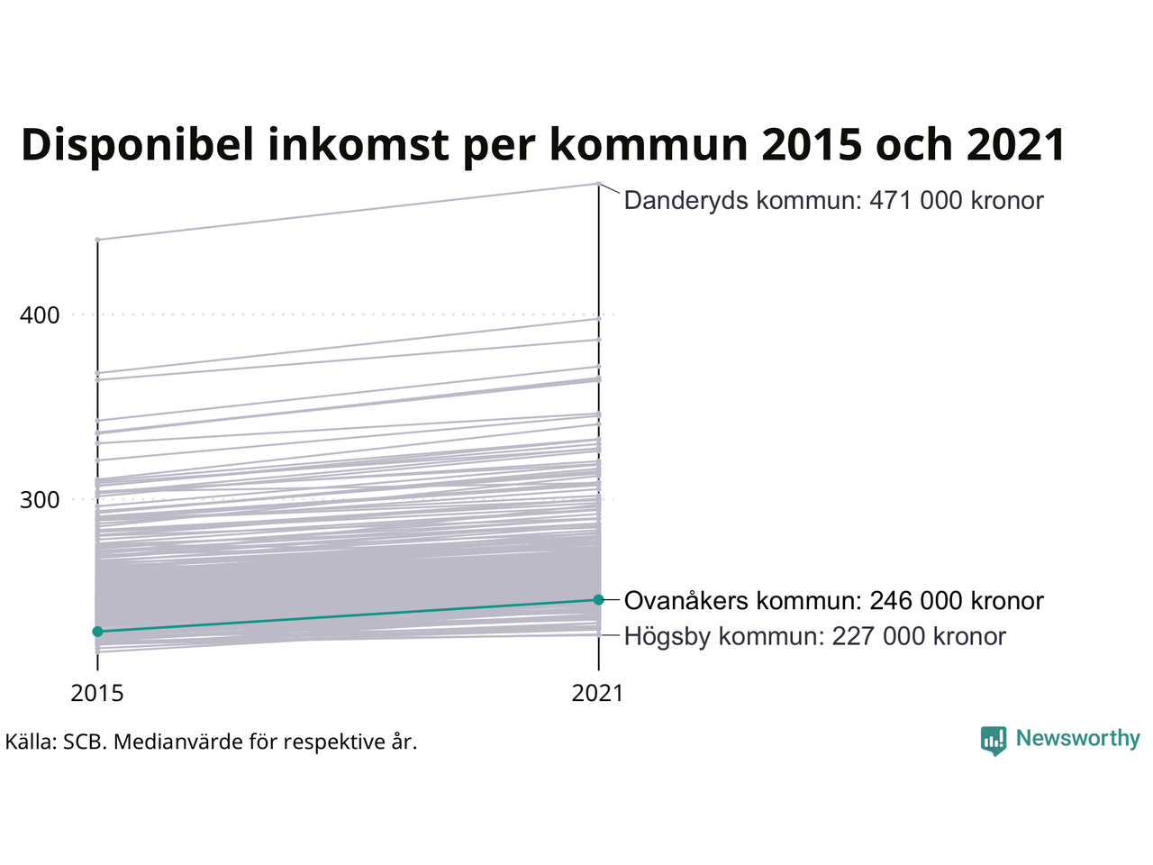 | Område | Kommun | Medianinkomst 2015 | Medianinkomst 2021 |