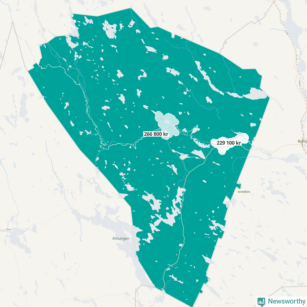 | Ovanåker | Alfta | 229 100 | Ovanåkers landsbygd | 266 800 |