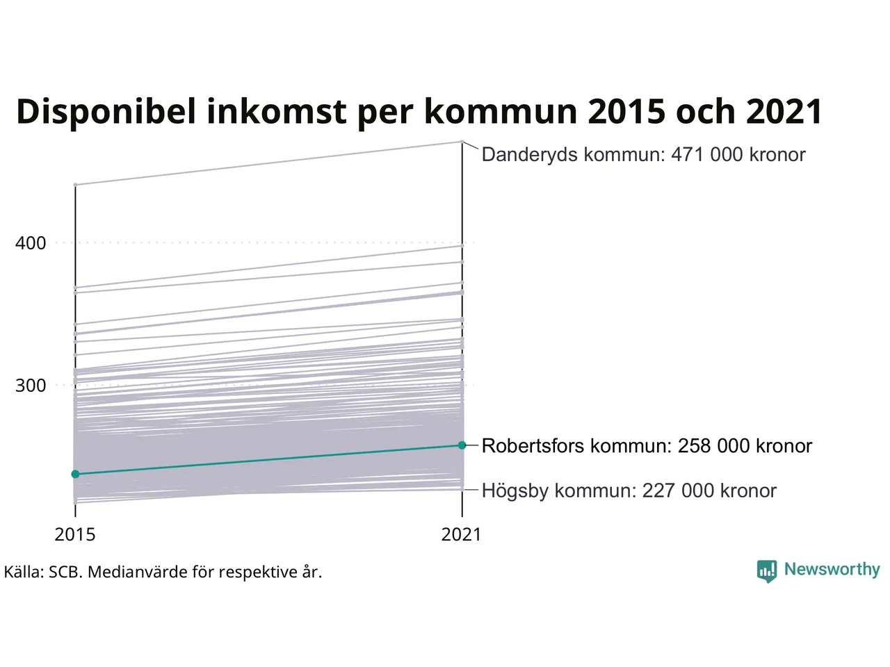 | Område | Kommun | Medianinkomst 2015 | Medianinkomst 2021 |