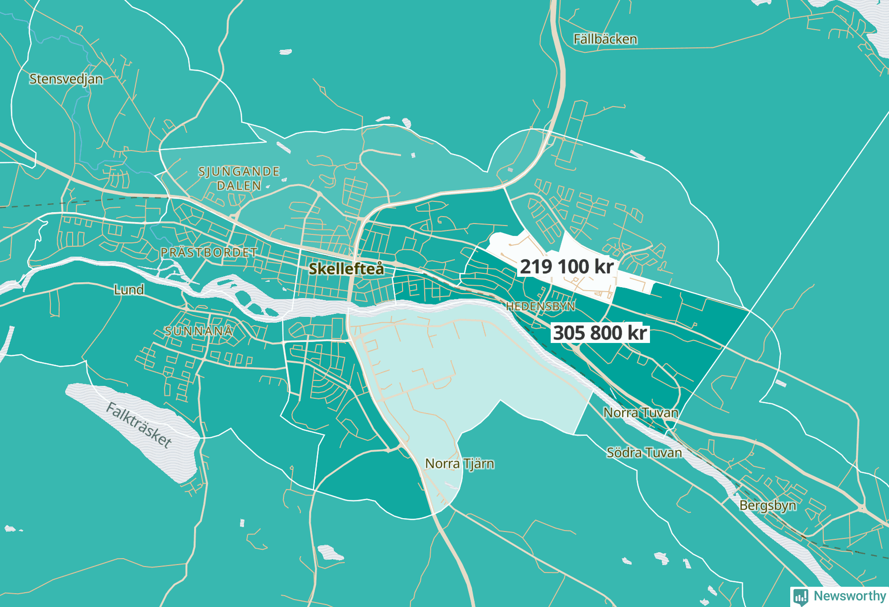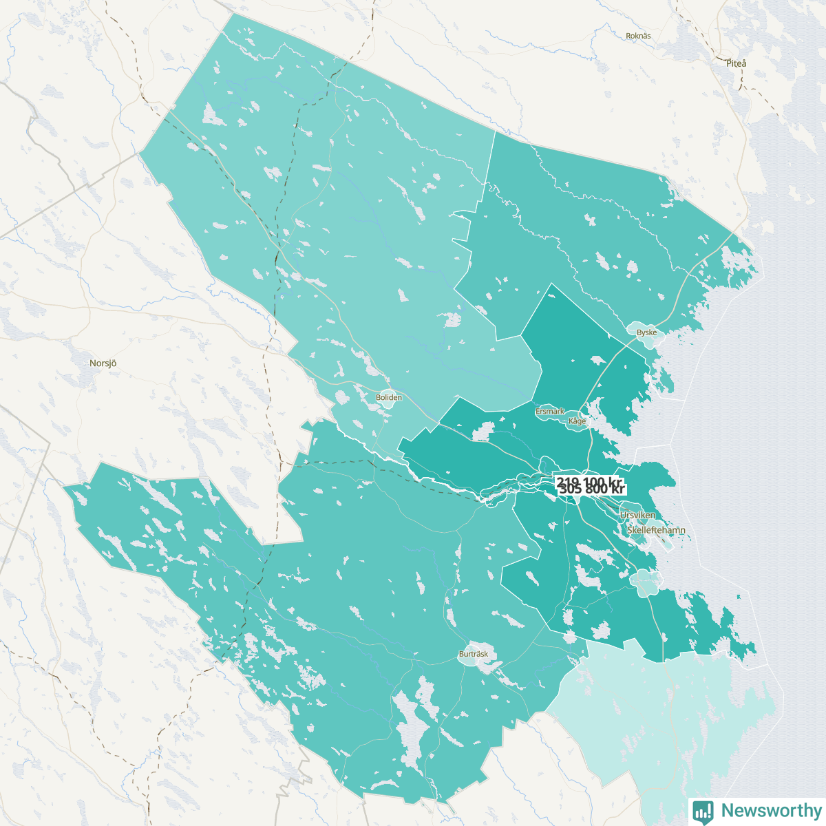 Invånarna i Skellefteå kommun har högst medianinkomst i Västerbotten. Men det finns skillnader mellan kommunens olika områden.