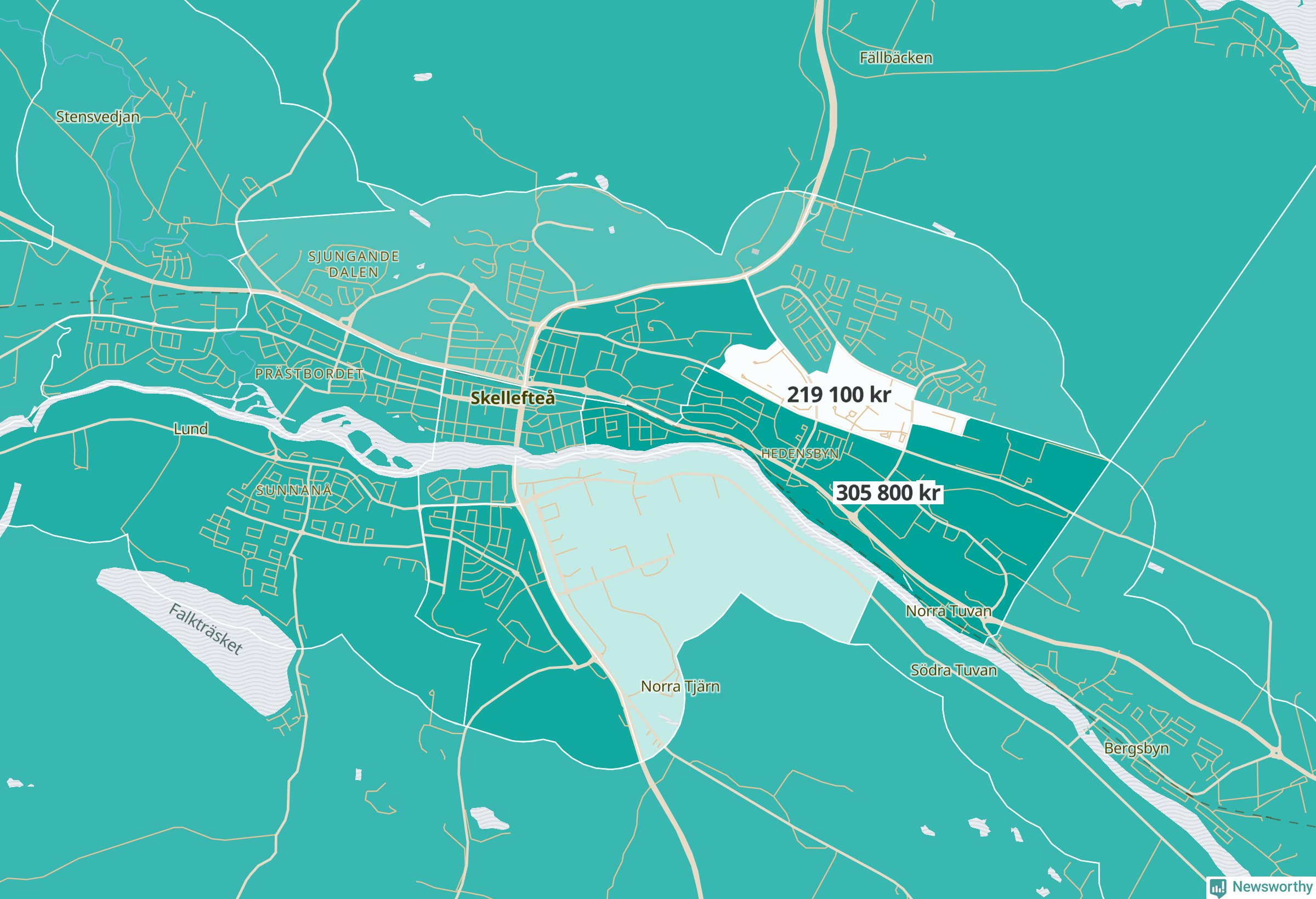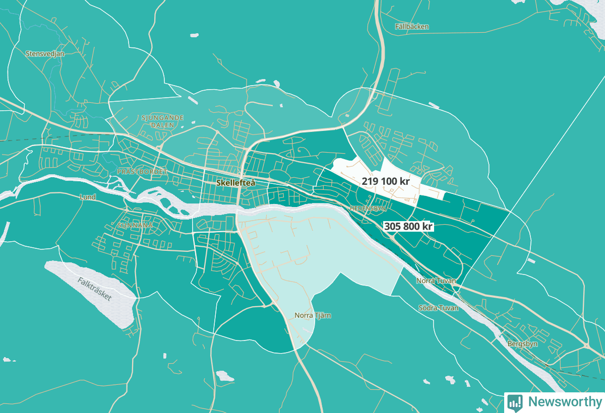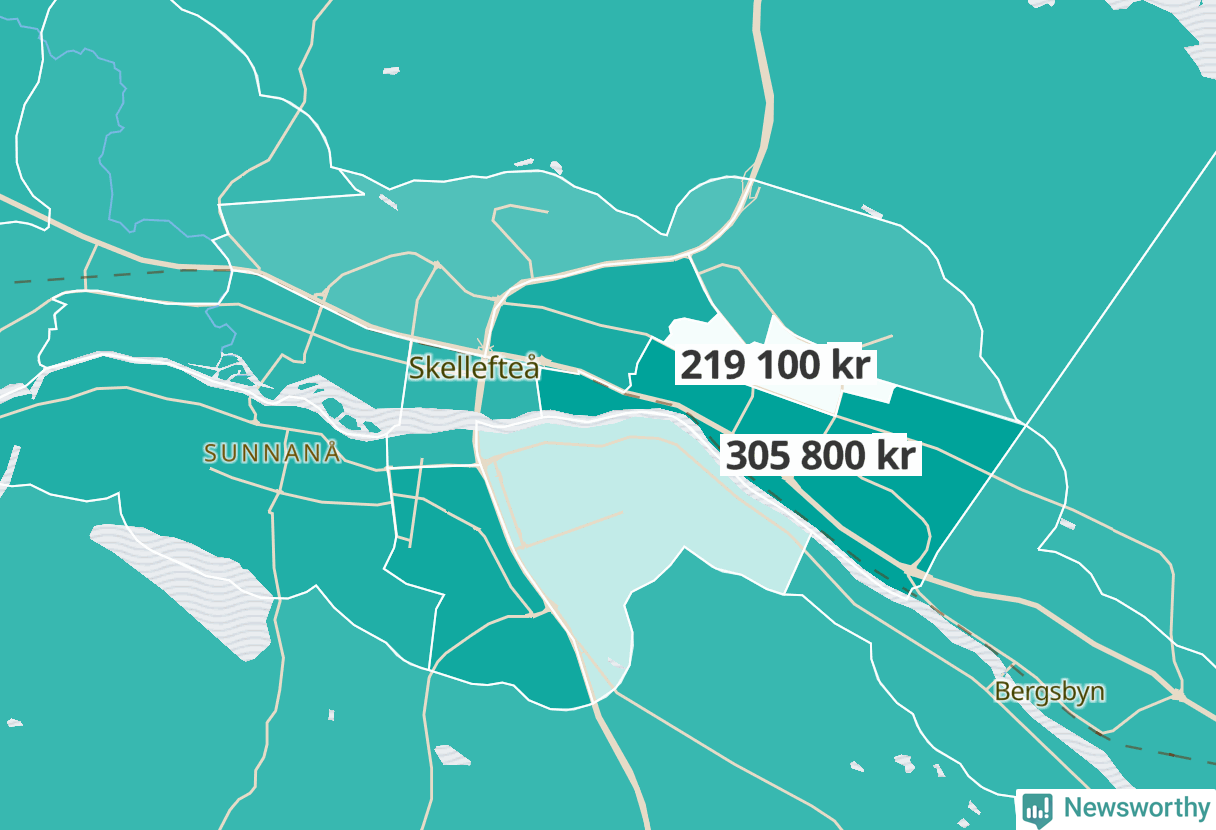 LyckseleNorrmalm-Norräng-Solsidan219 900Lugnet-Lycksele centrum270 600