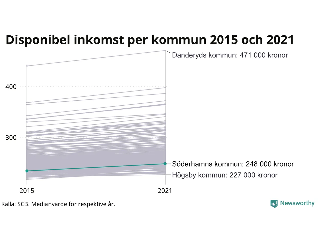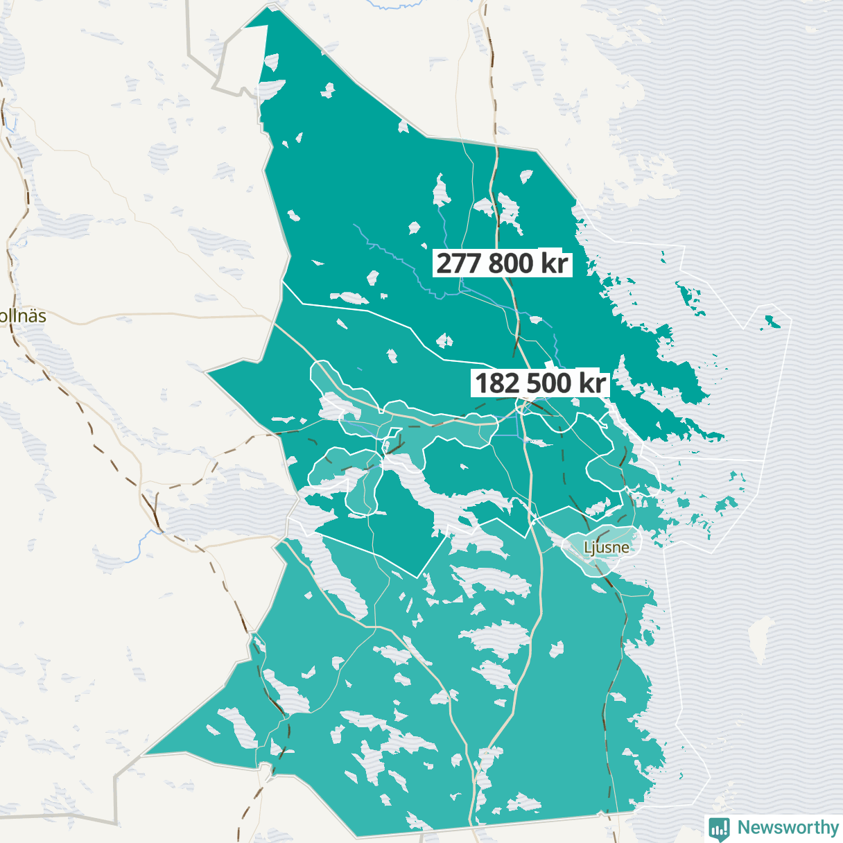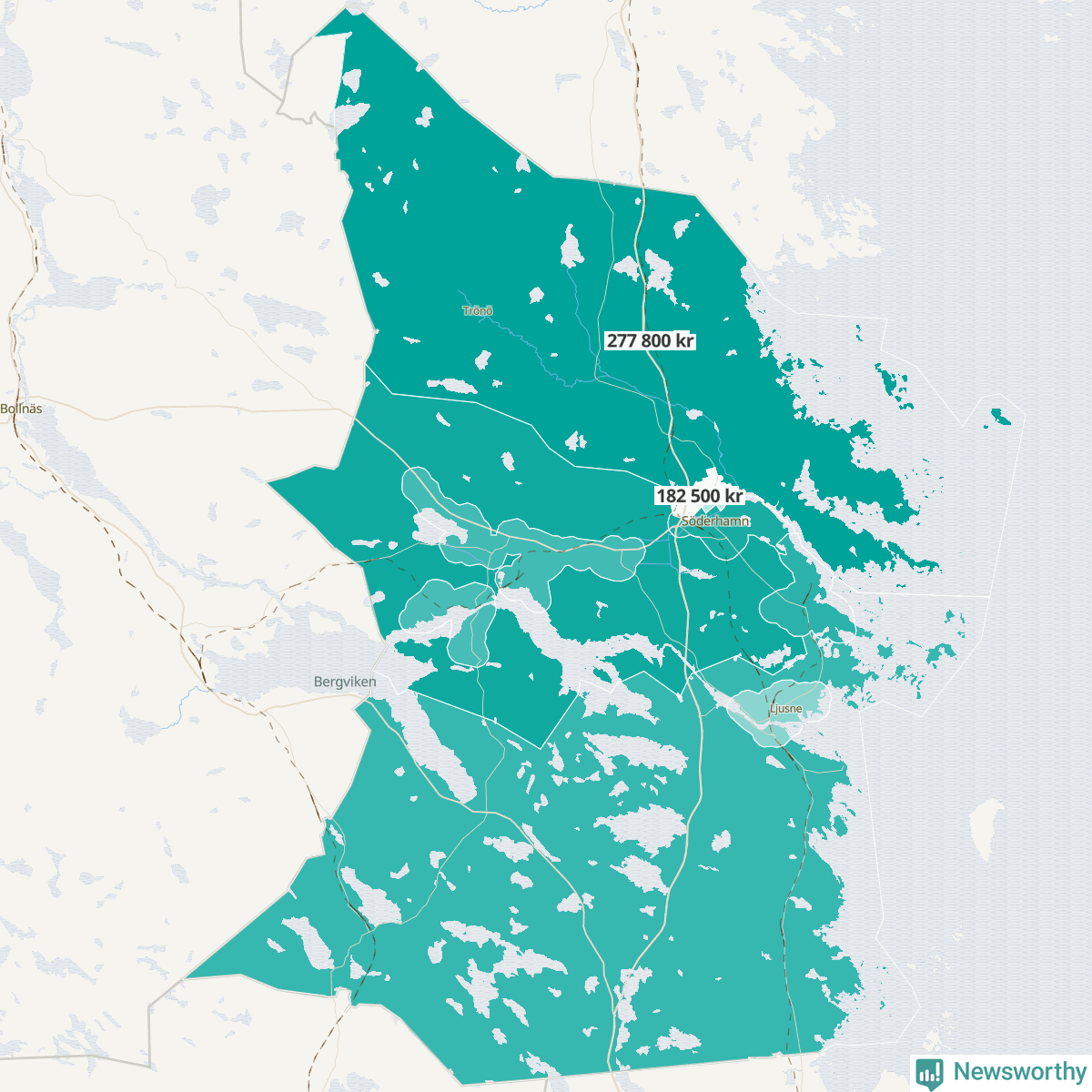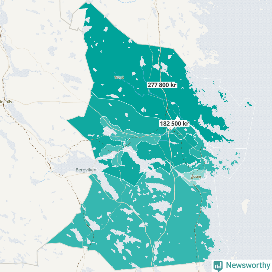I Norrala-Trönö var medianinkomsten 277 800 kronor, i Söderhamn centrala staden norr 182 500.