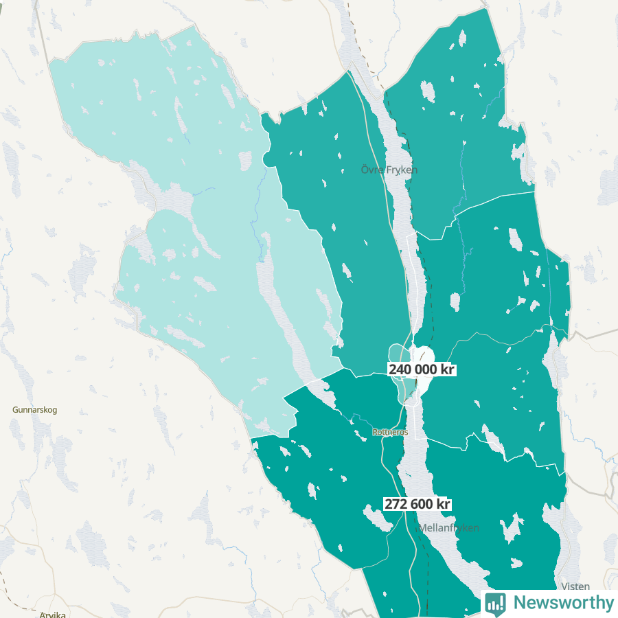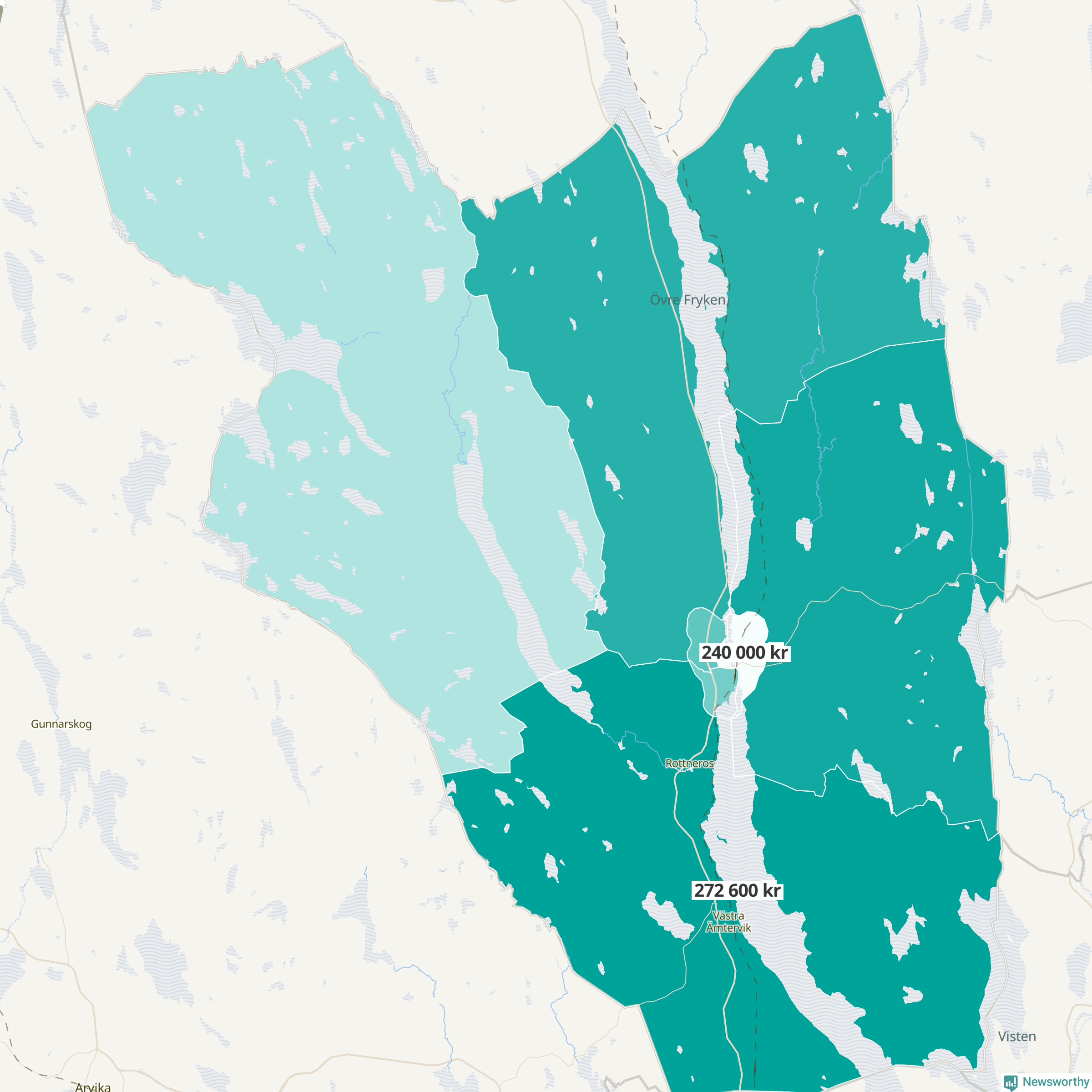 Grums | Orrby-Grönberg | 224 700 | Borgvik-Värmskog-Skruvstad | 279 000 |
