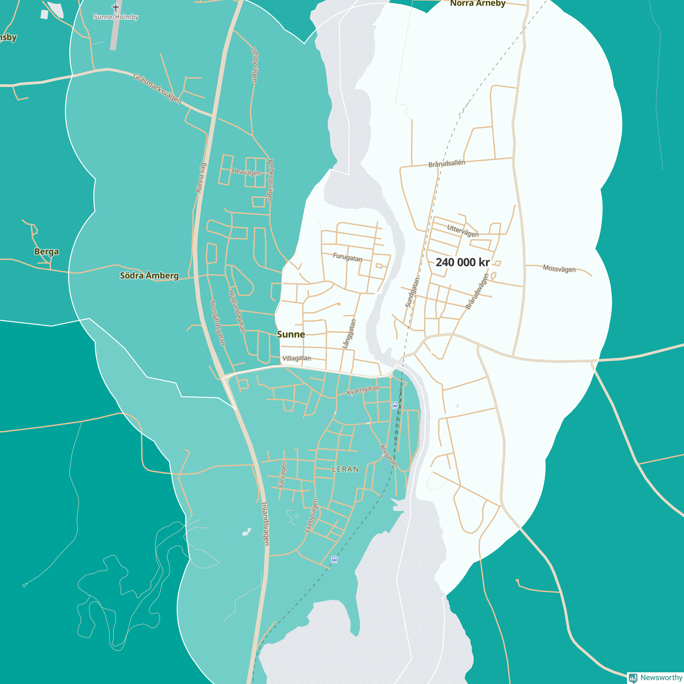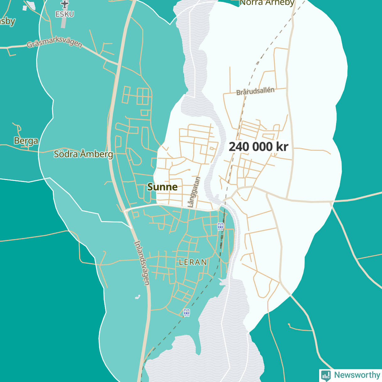 Sunne | Sunne tätort östra | 240 000 | Sunne södra kommundel | 272 600 |