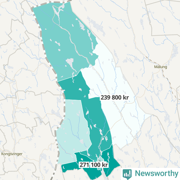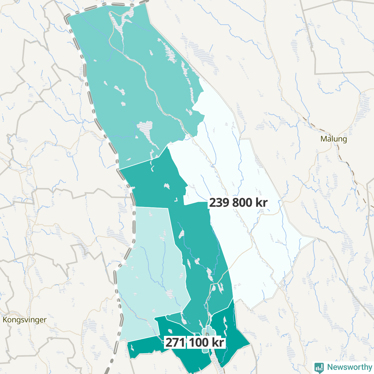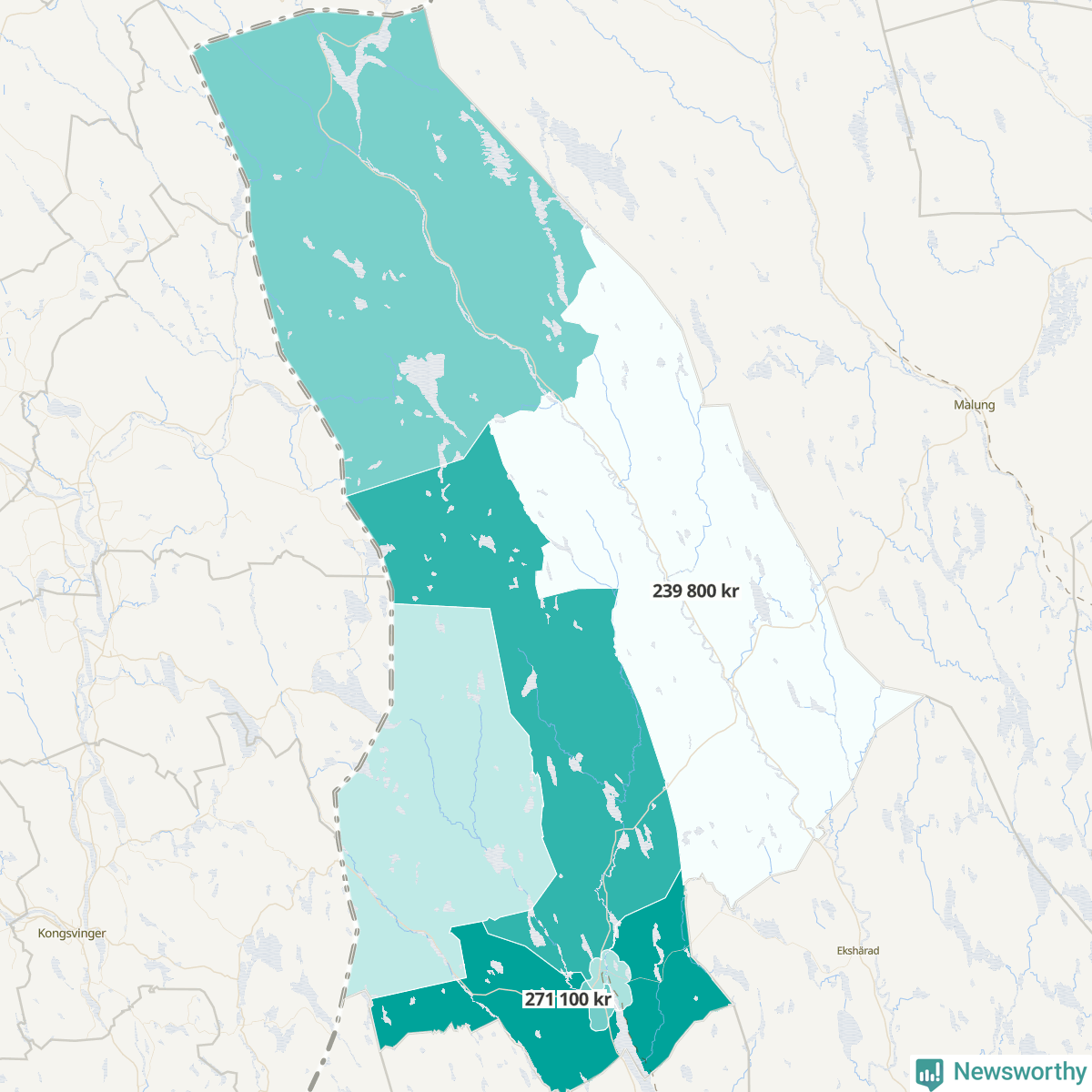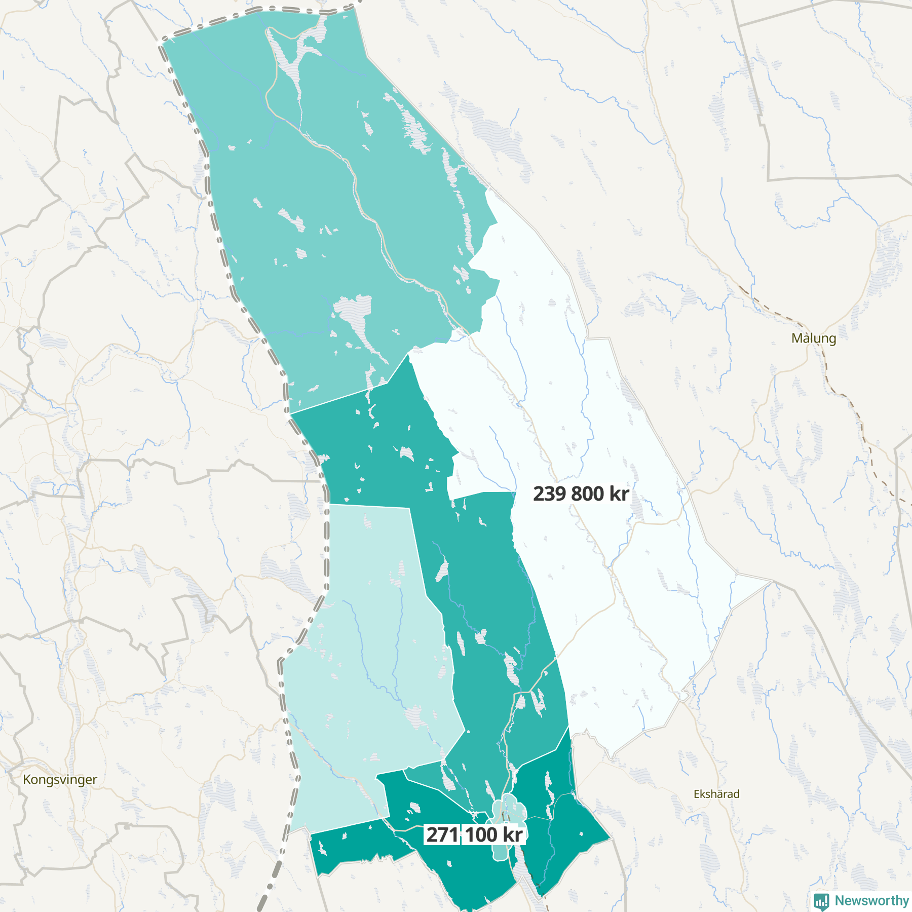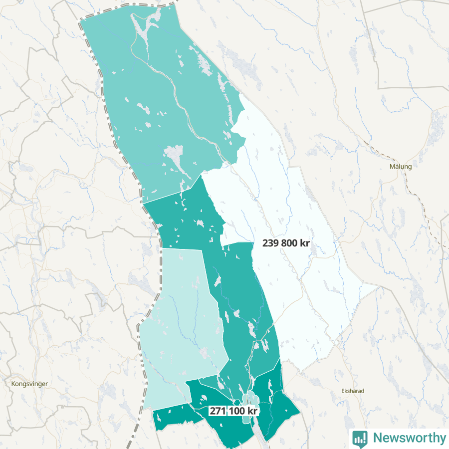 I Torsby omland var medianinkomsten 271 100 kronor, i Stöllet-Ambjörby-Likenäs 239 800.
