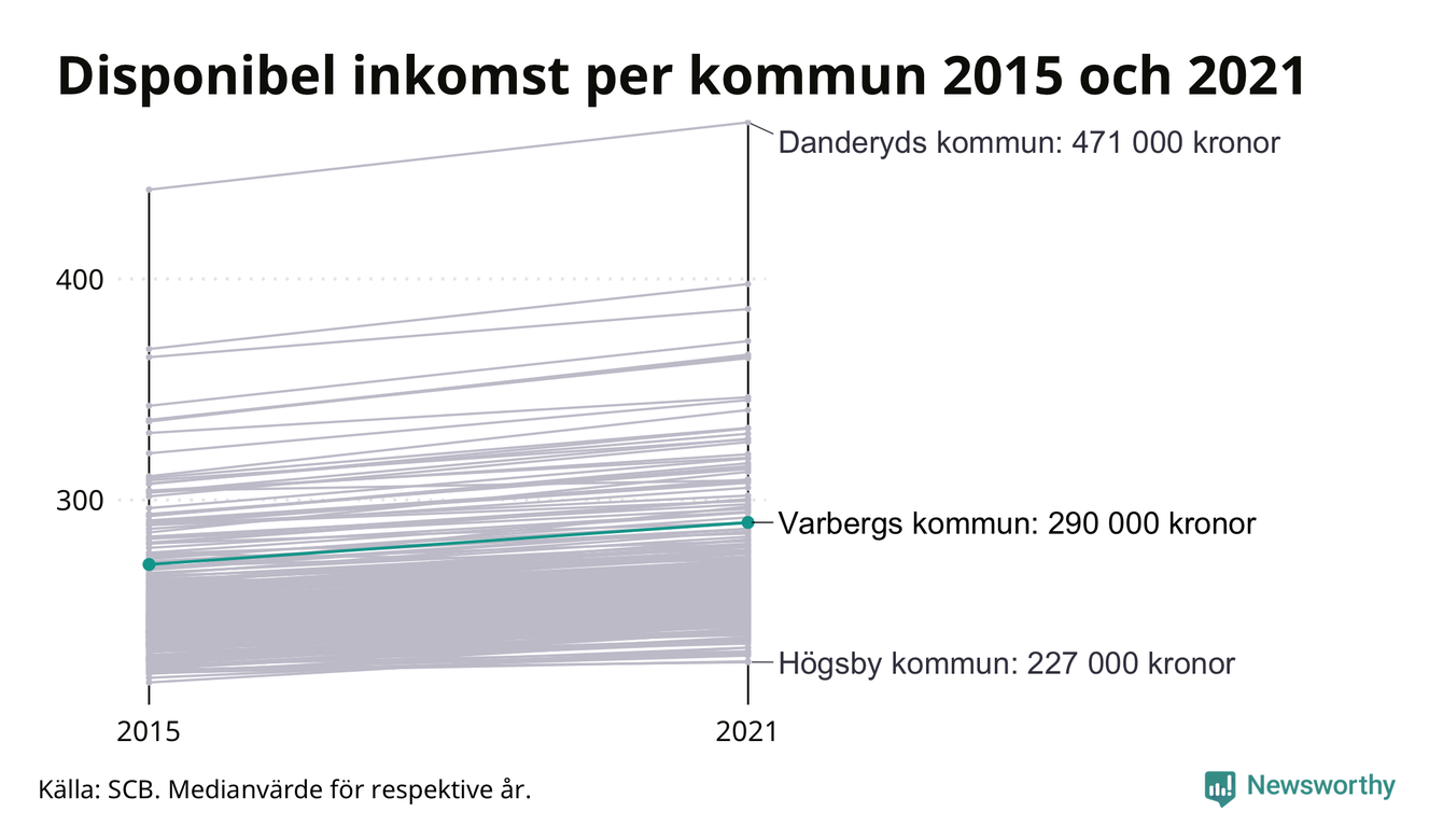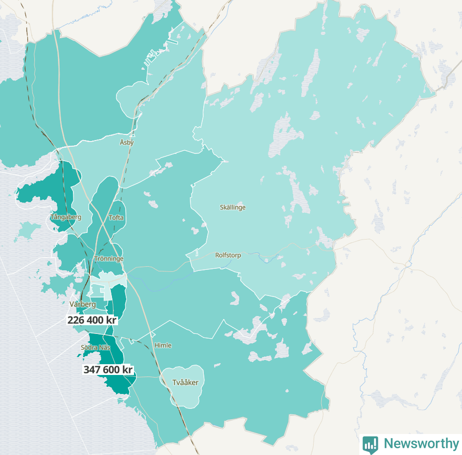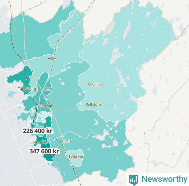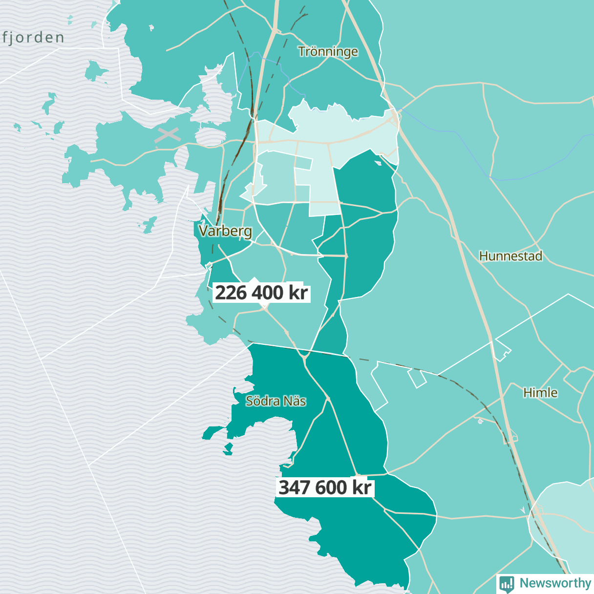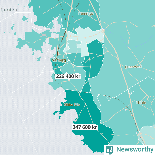 I Södra Näs-Träslövsläge-Gamla Köpstad var medianinkomsten 347 600 kronor, i Sörse 226 400.