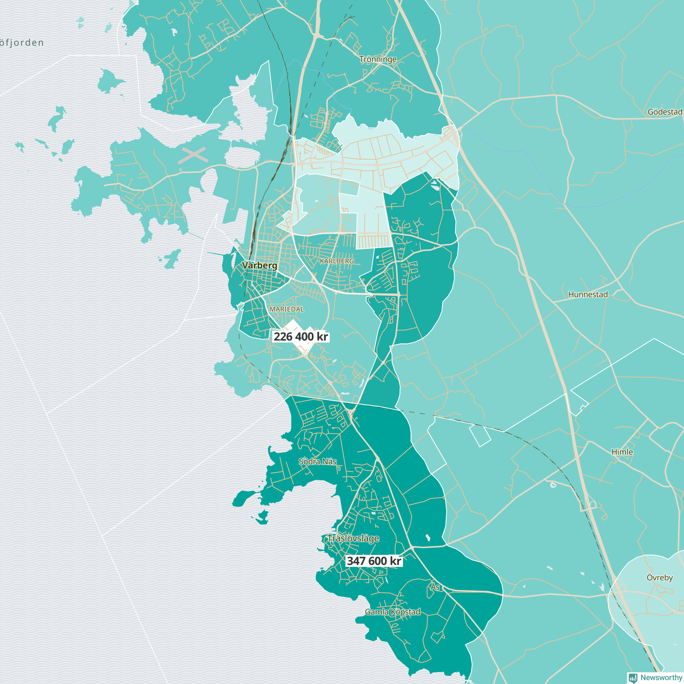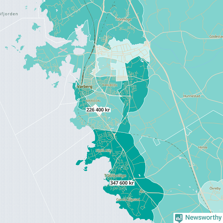 Varberg | Sörse | 226 400 | Södra Näs-Träslövsläge-Gamla Köpstad | 347 600 |