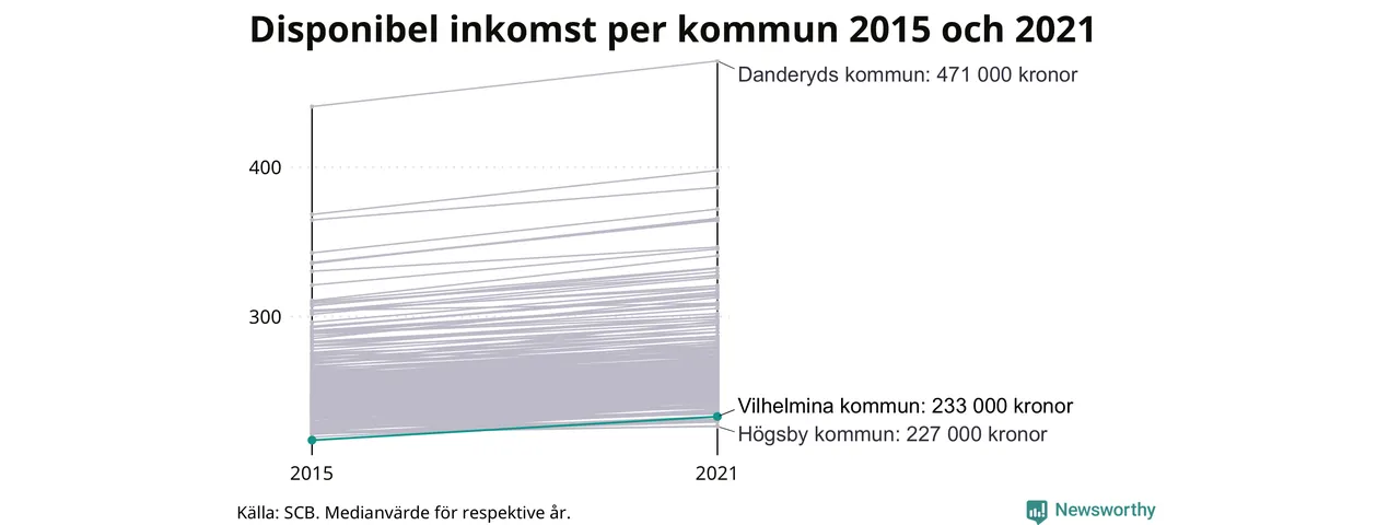 | Område | Kommun | Medianinkomst 2015 | Medianinkomst 2021 |