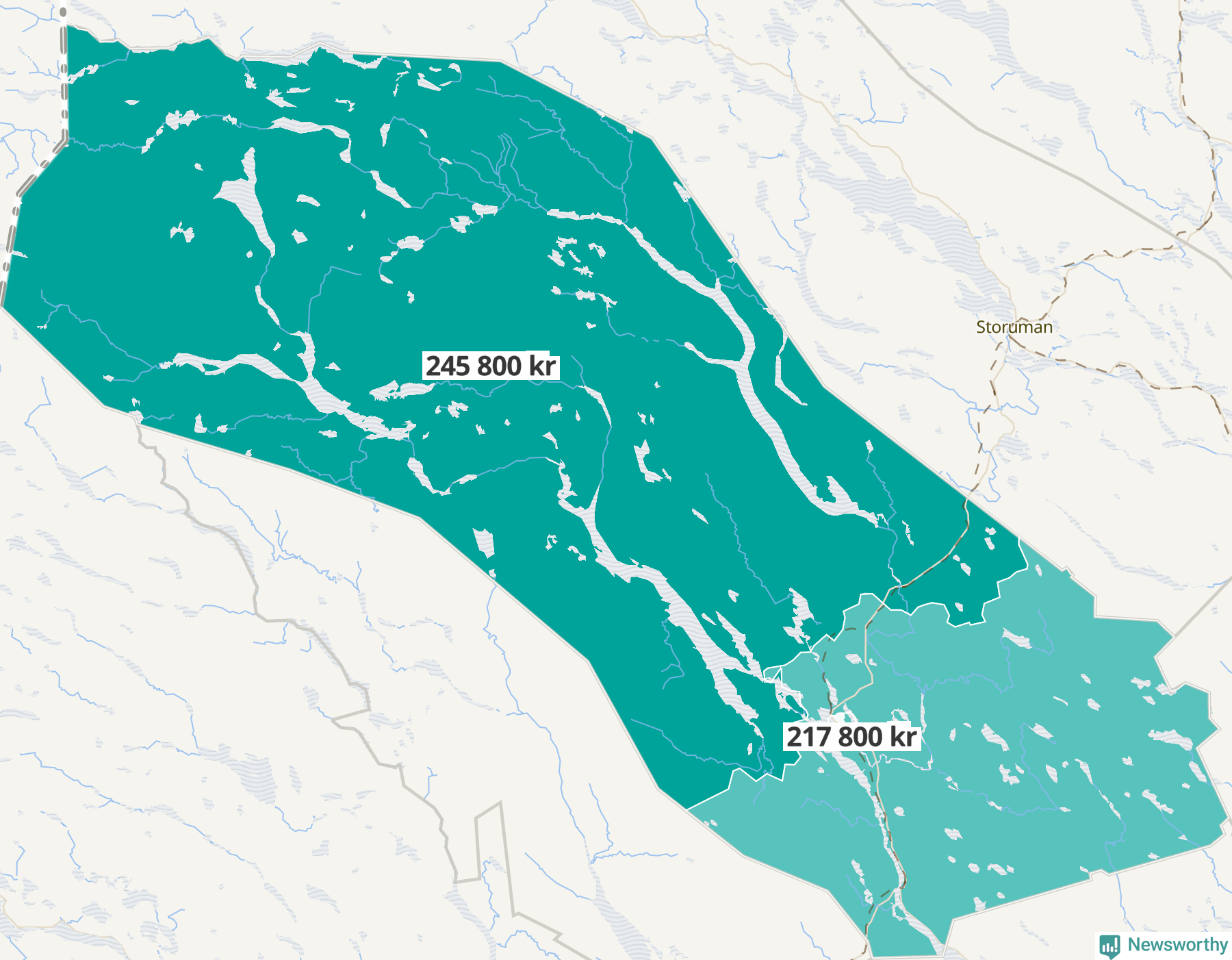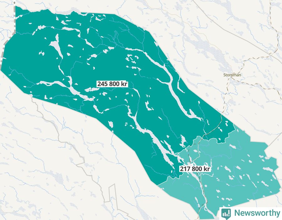 | Sorsele | Sorsele centralort | 238 500 | Sorsele omland | 242 000 |