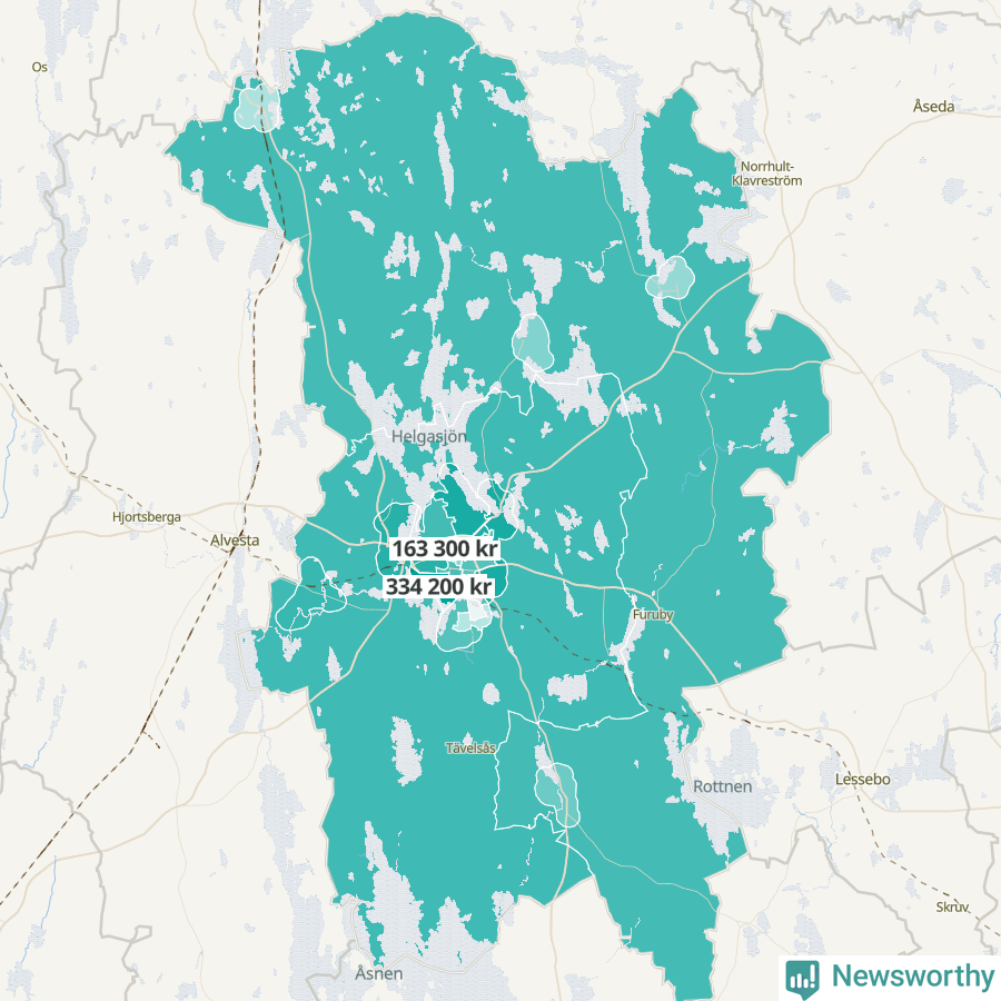 Lessebo | Lessebo centralort | 212 800 | Hovmantorp | 253 200 |