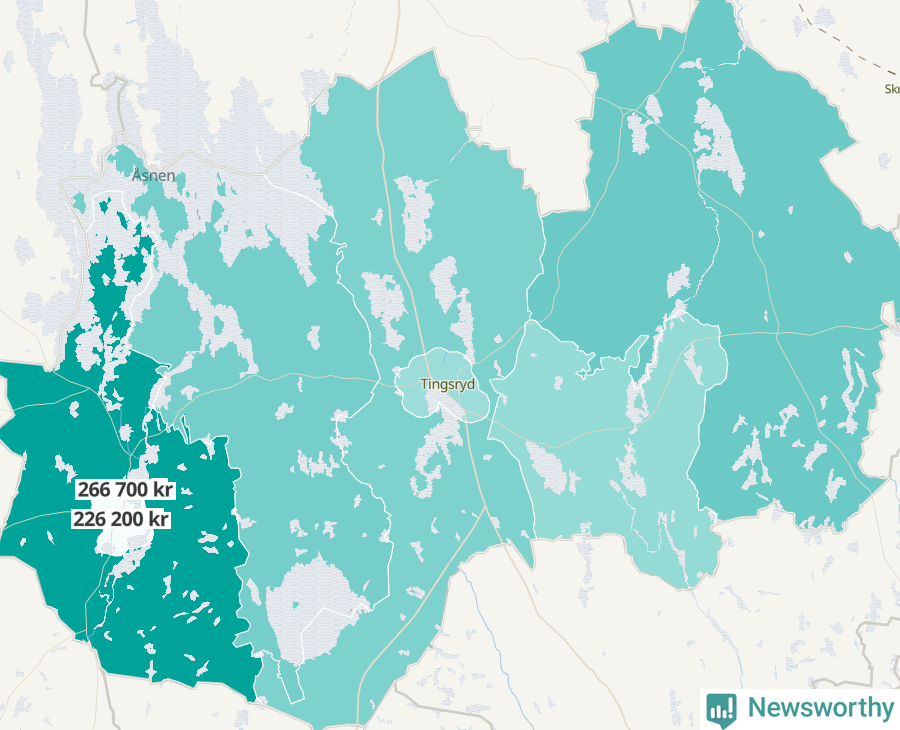 Tingsryd | Ryds tätort | 226 200 | Ryds glesbygd | 266 700 |