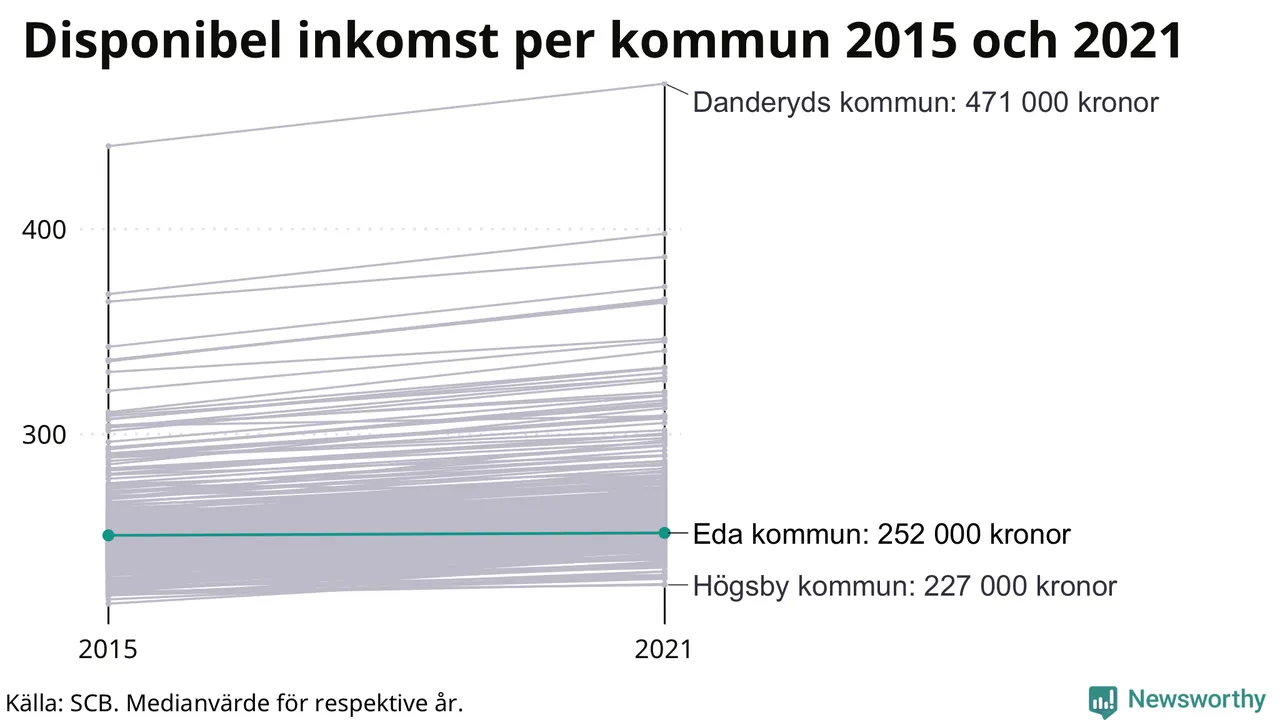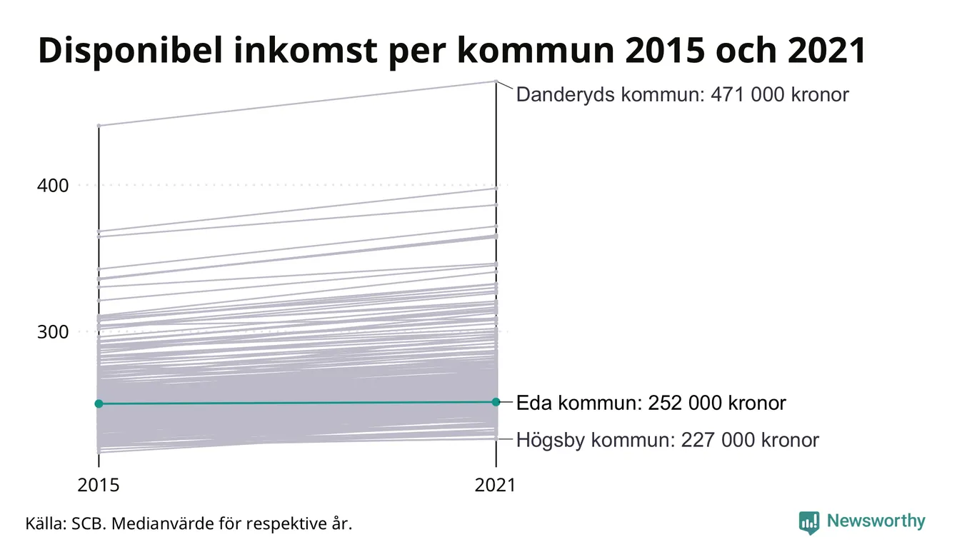 Det skiljer drygt 70 000 kronor mellan områdena med högst respektive lägst inkomst i Eda. Och avståndet har ökat de senaste åren.