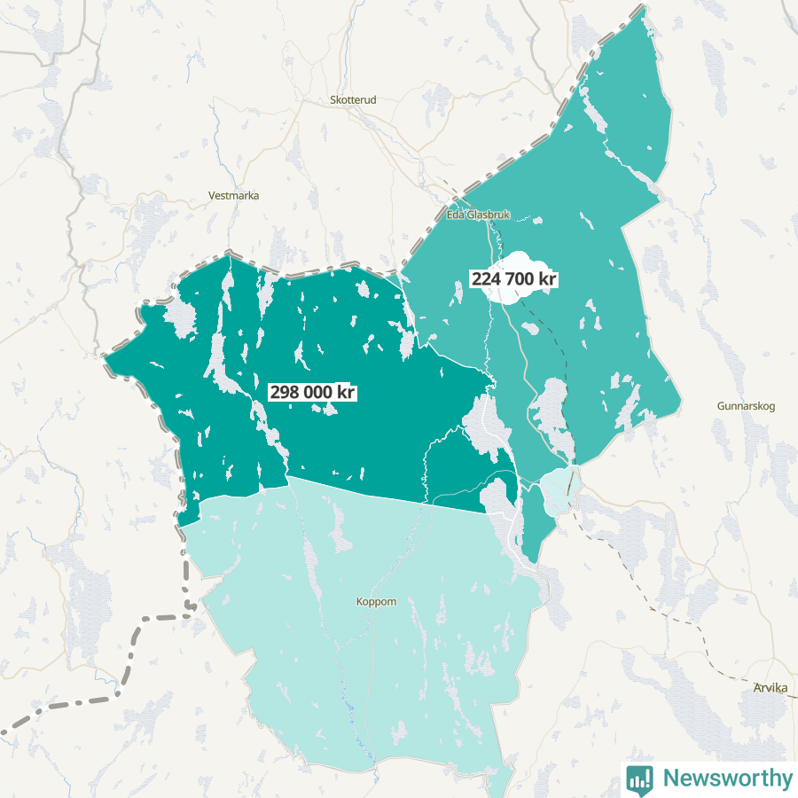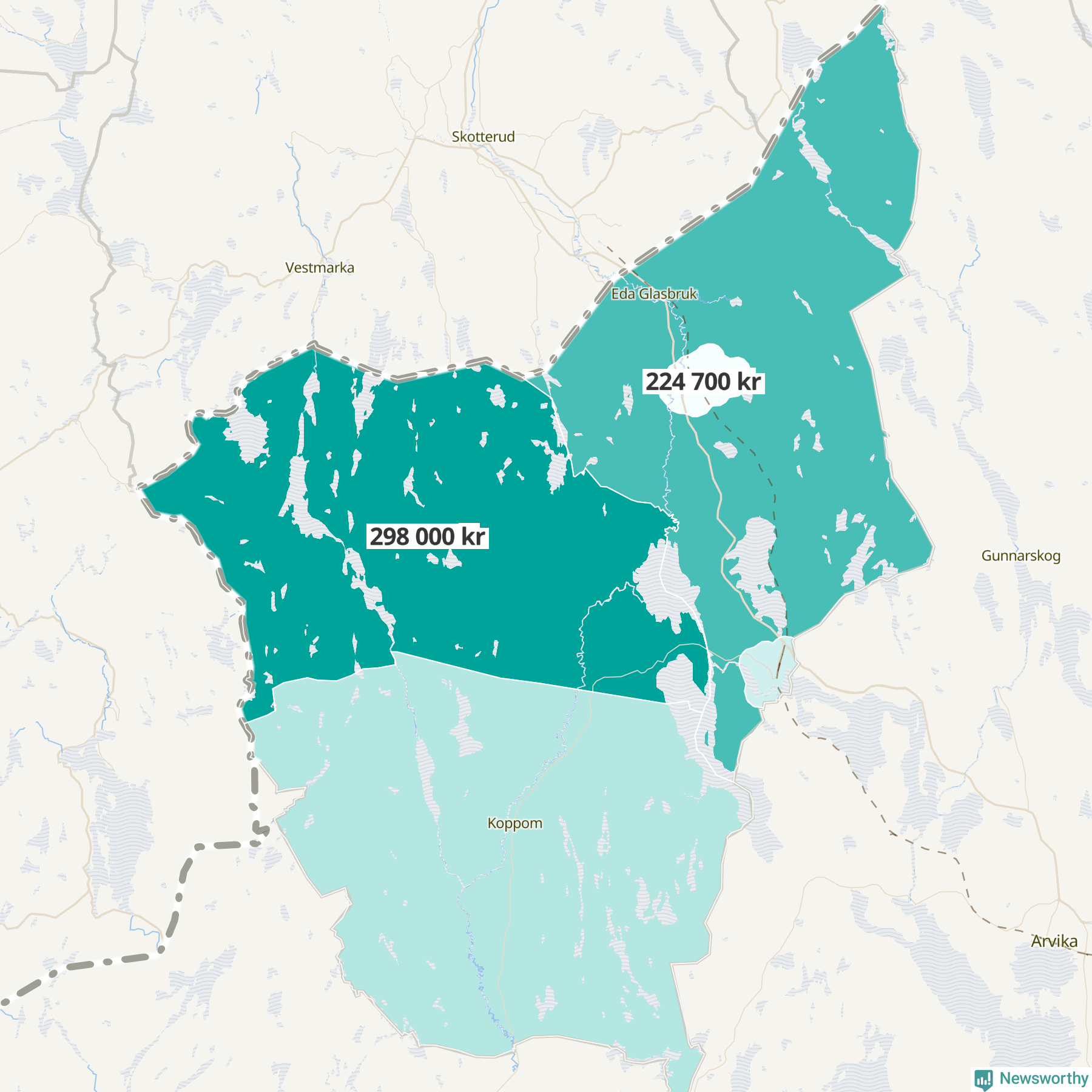 Eda | Charlottenberg tätort | 224 700 | Köla-Skillingmark | 298 000 |