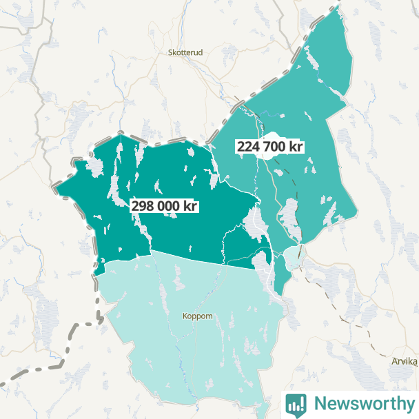 Grums | Orrby-Grönberg | 224 700 | Borgvik-Värmskog-Skruvstad | 279 000 |