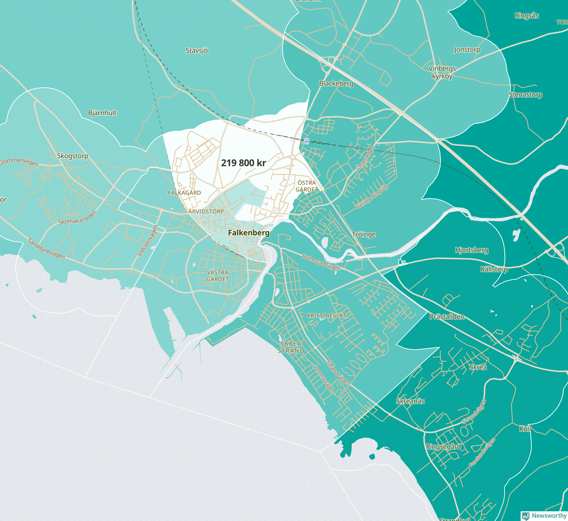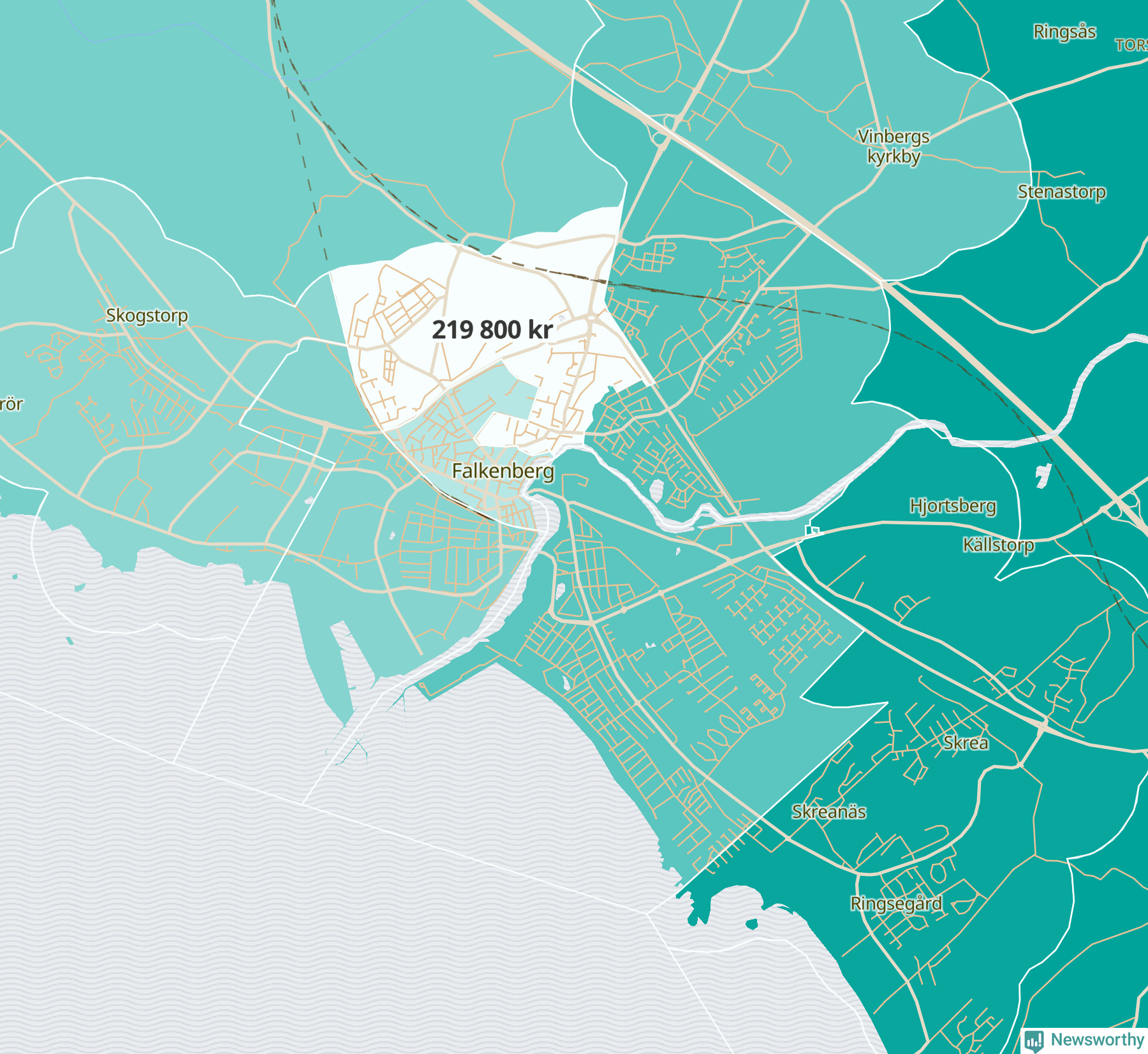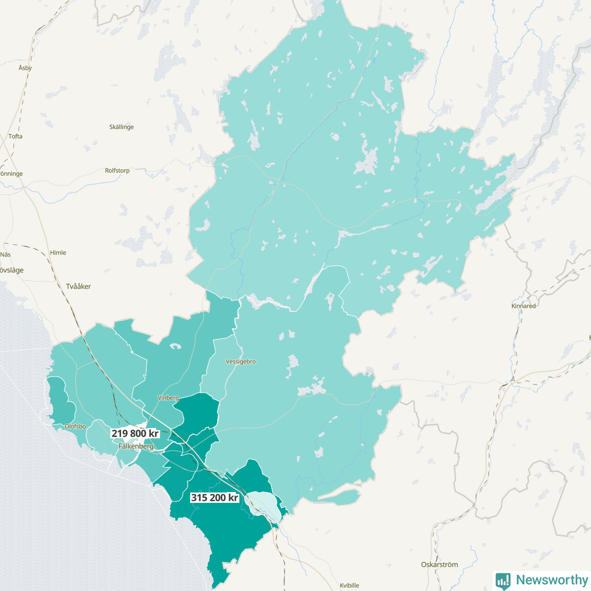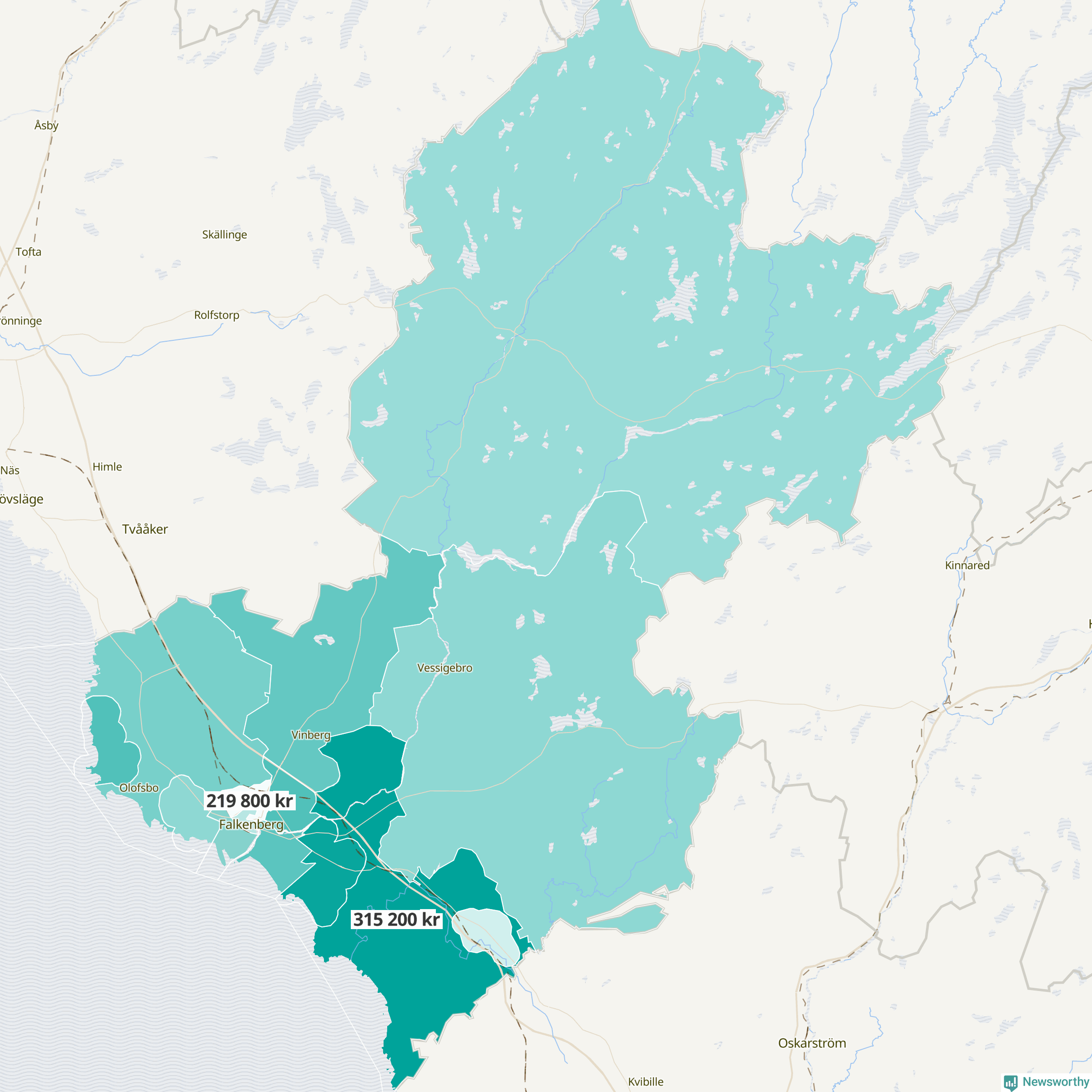 Falkenberg | Stafsinge-Gruebäcken | 219 800 | Falkenbergs södra kustområde | 315 200 |