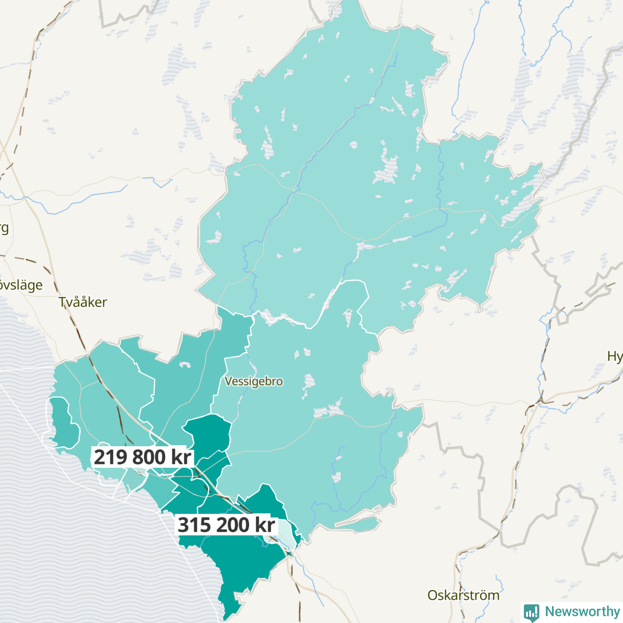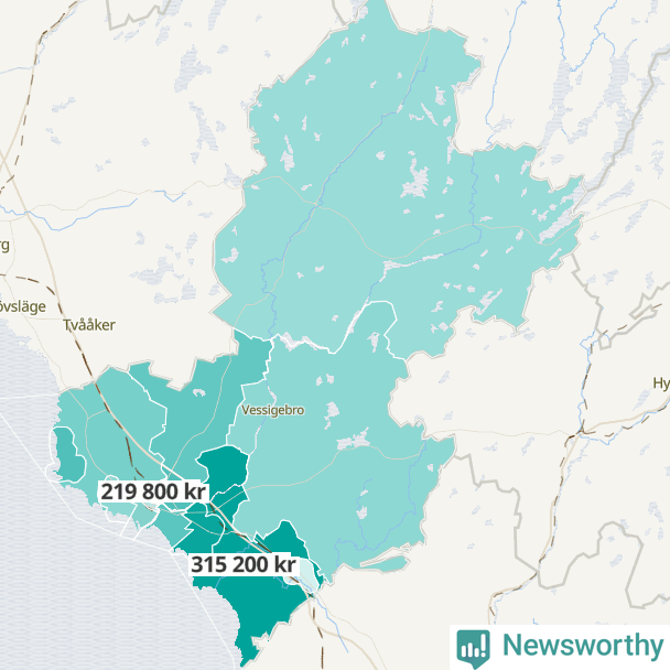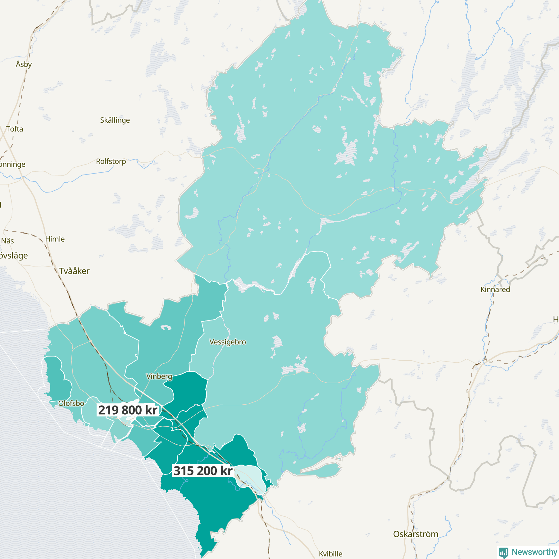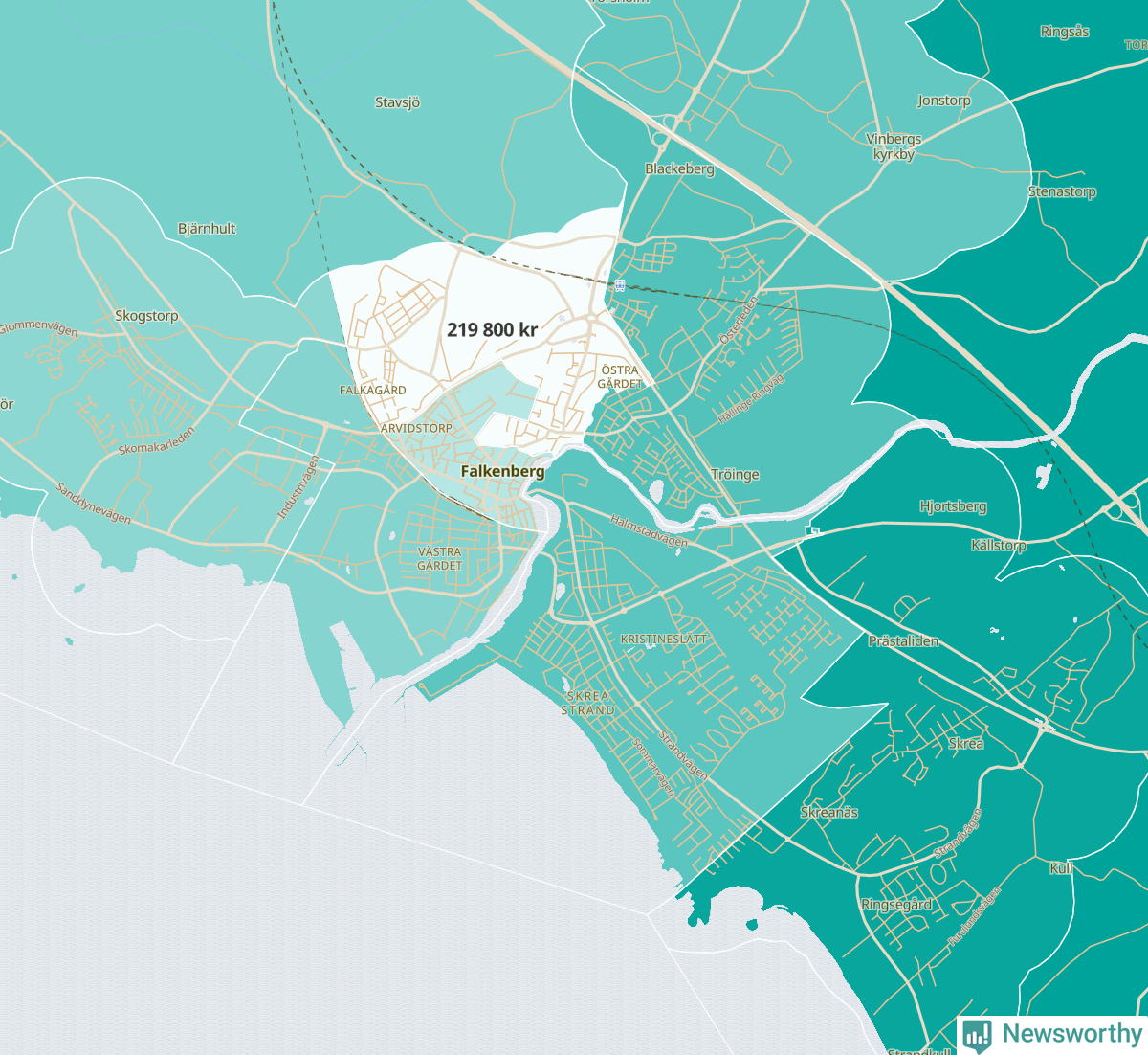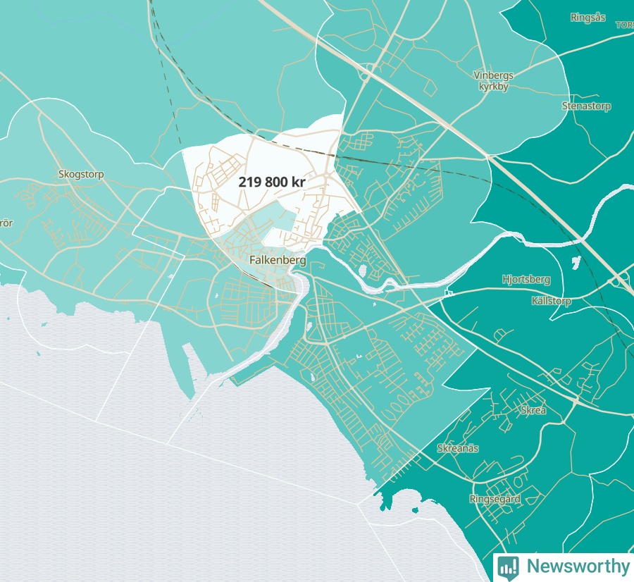 Falkenberg | Stafsinge-Gruebäcken | 219 800 | Falkenbergs södra kustområde | 315 200 |
