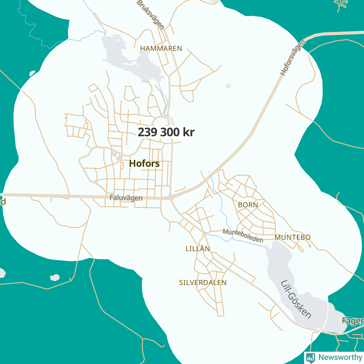 Det skiljer knappt 60 000 kronor mellan områdena med högst respektive lägst inkomst i Hofors.