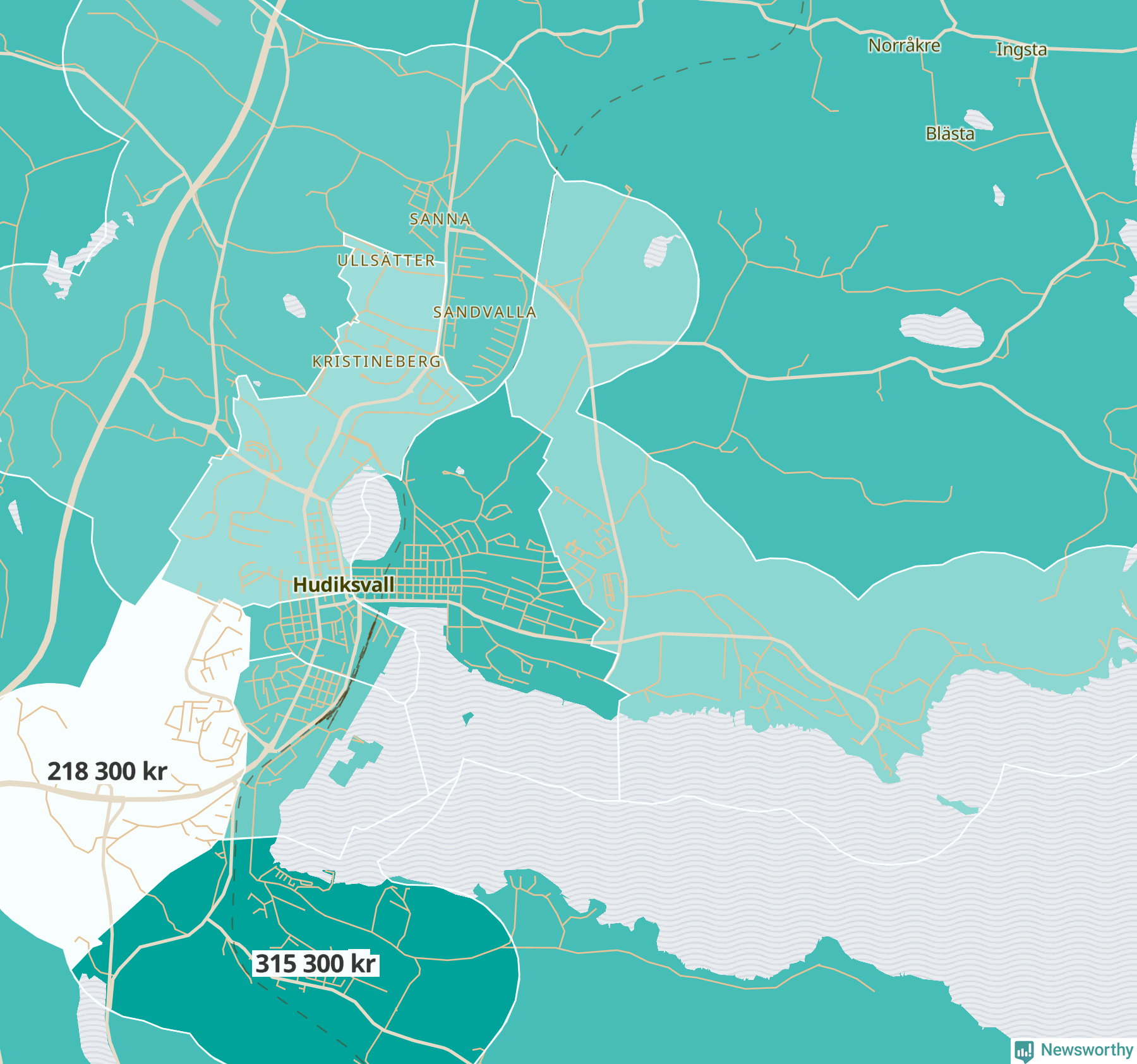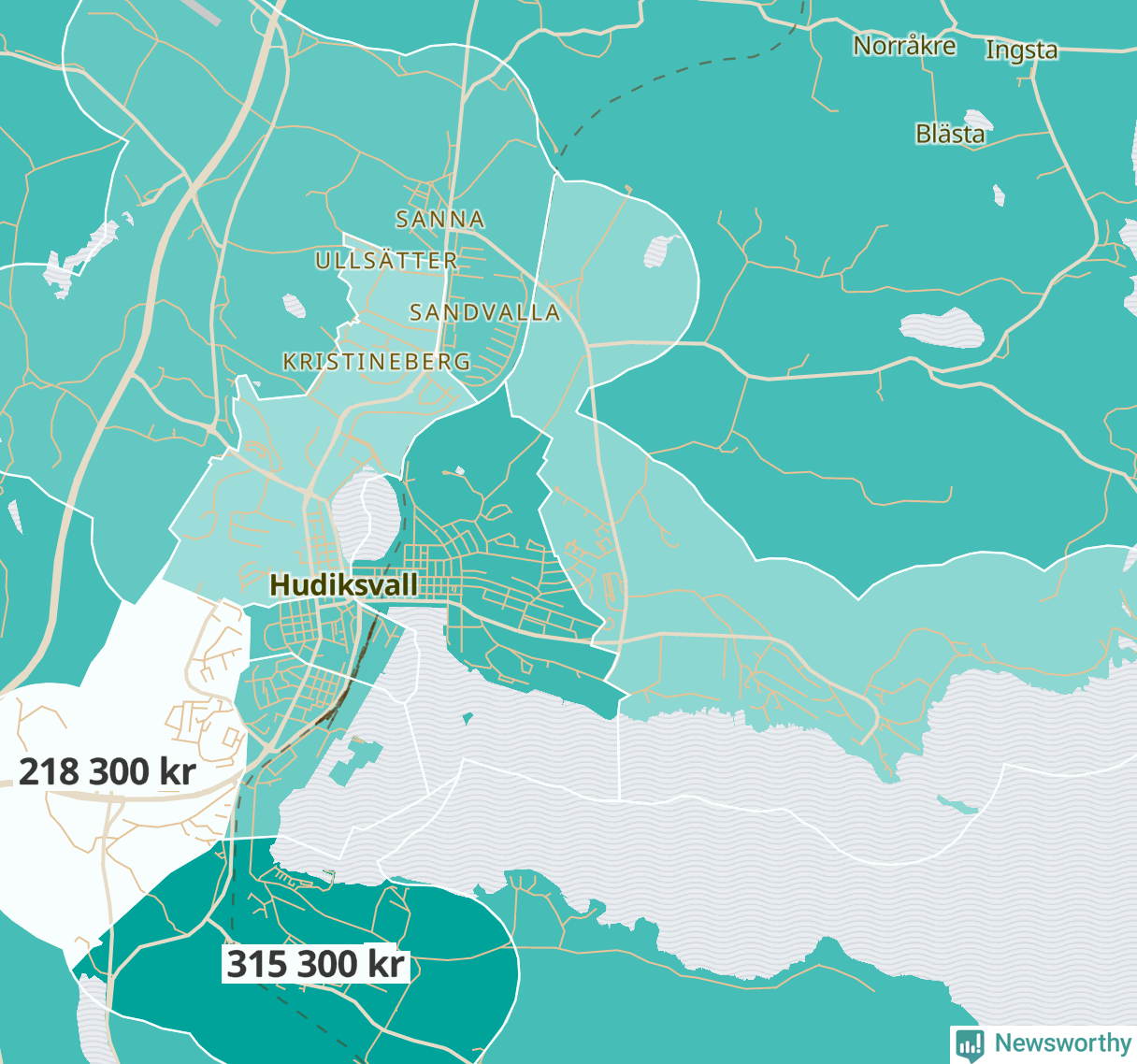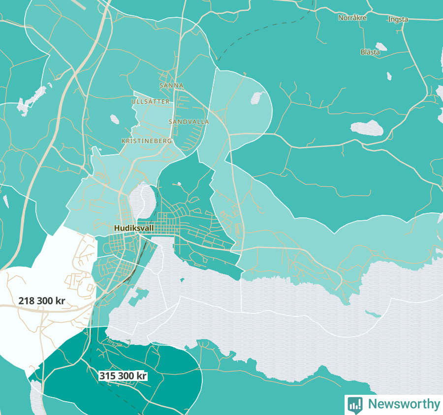 Det skiljer knappt 100 000 kronor mellan områdena med högst respektive lägst inkomst i Hudiksvall. Och avståndet har ökat de senaste åren.