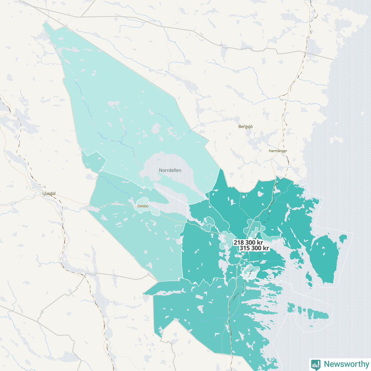| Söderhamn | Söderhamn centrala staden norr | 182 500 | Norrala-Trönö | 277 800 |
