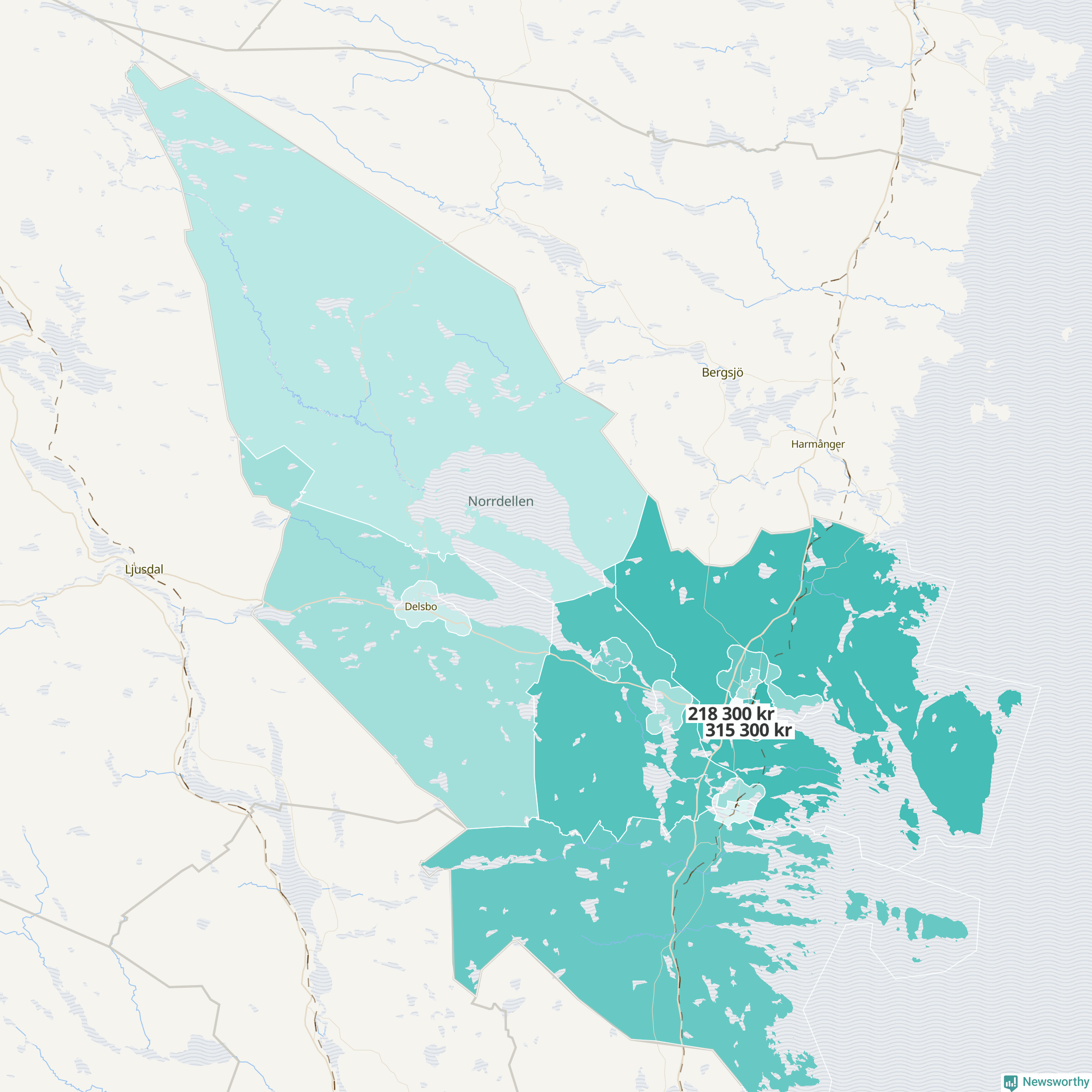 | Ljusdal | Ljusdal norra | 199 500 | Järvsö omland | 267 700 |
