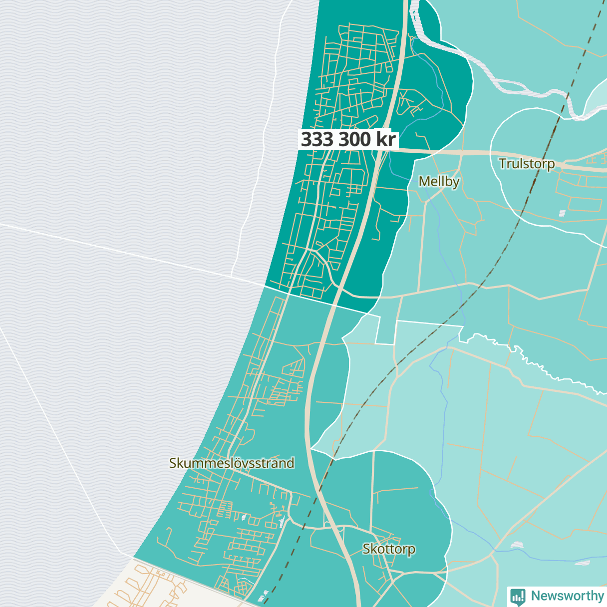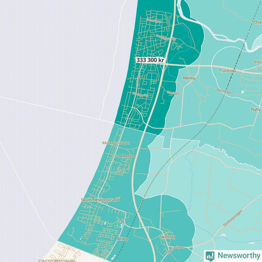 I Mellbystrand var medianinkomsten 333 300 kronor, i Knäred 231 900.