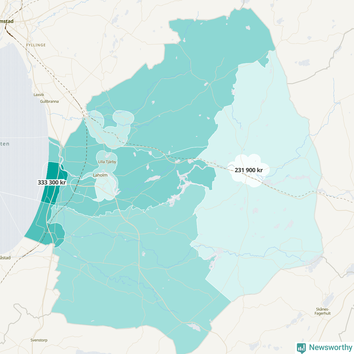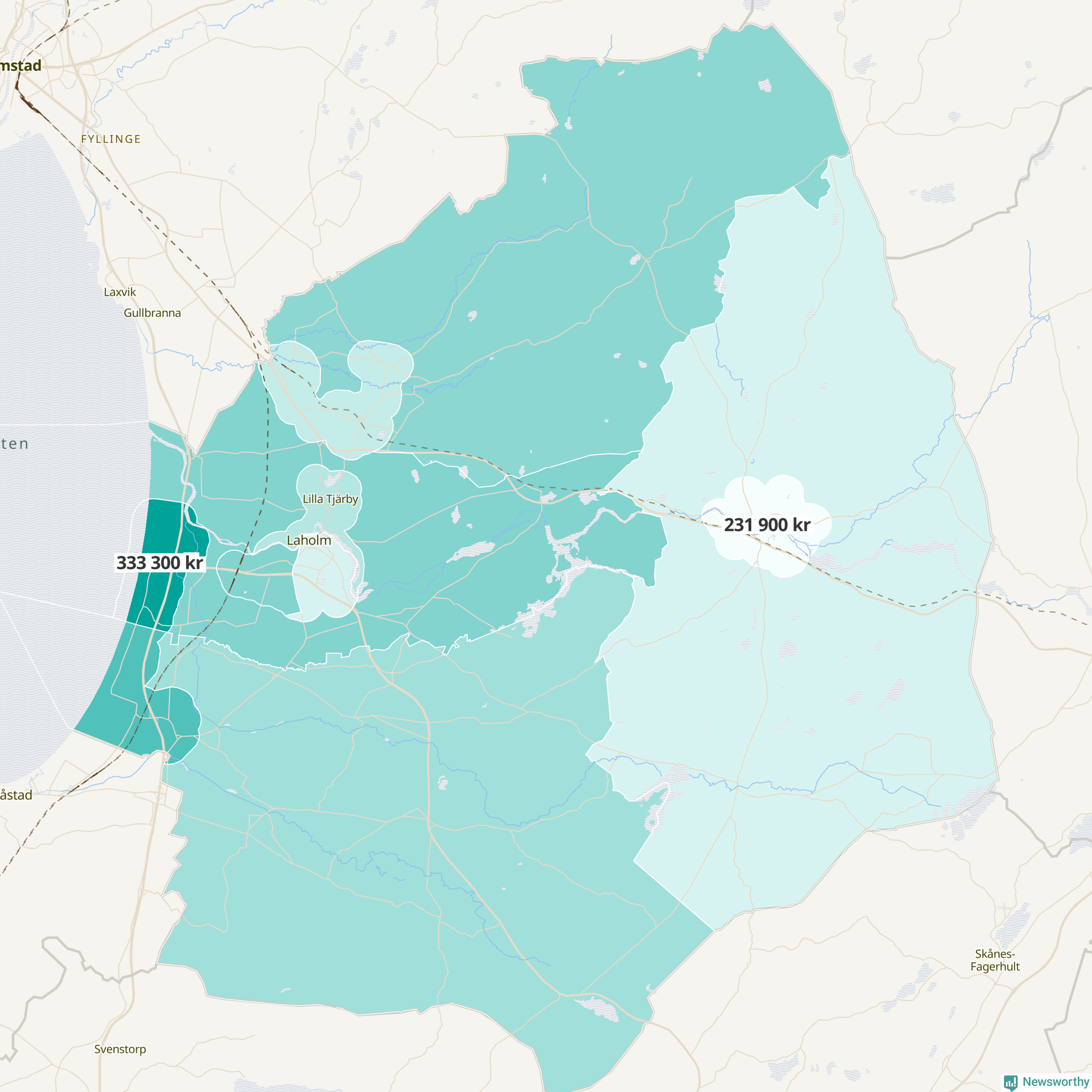 Laholm | Knäred | 231 900 | Mellbystrand | 333 300 |