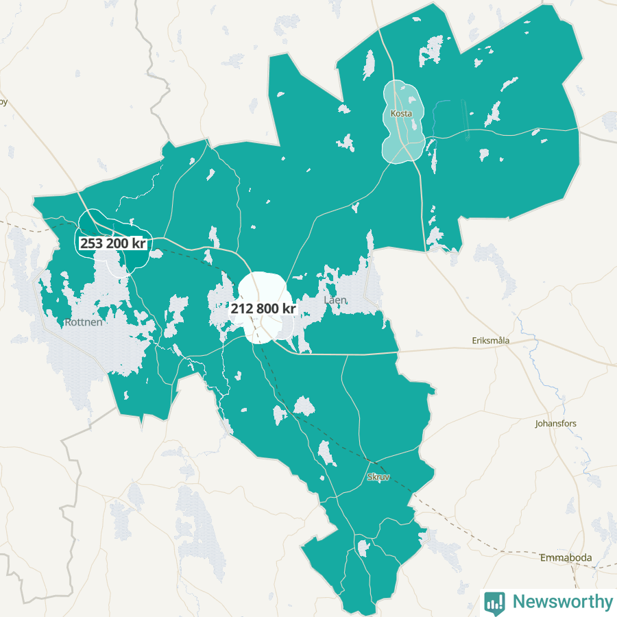 Lessebo | Lessebo centralort | 212 800 | Hovmantorp | 253 200 |