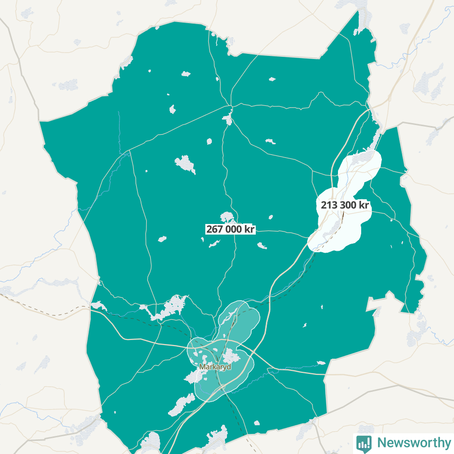 Markaryd | Traryd-Strömsnäsbruk | 213 300 | Markaryds kommuns landsbygd | 267 000 |