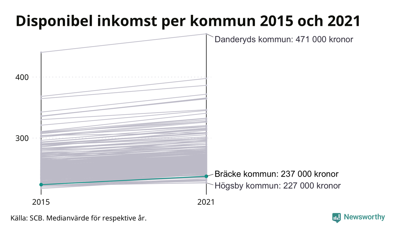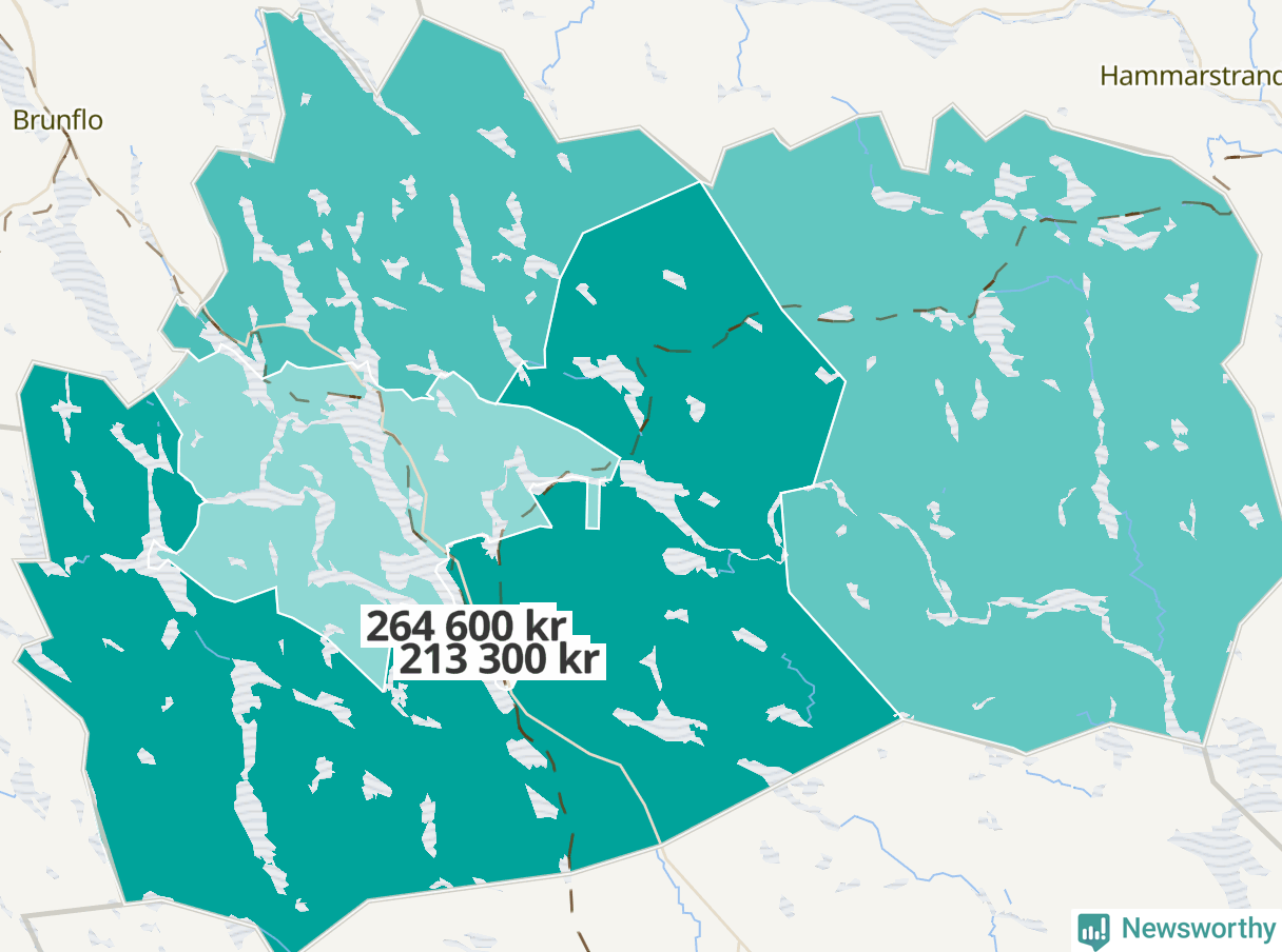Det skiljer drygt 50 000 kronor mellan områdena med högst respektive lägst inkomst i Bräcke.