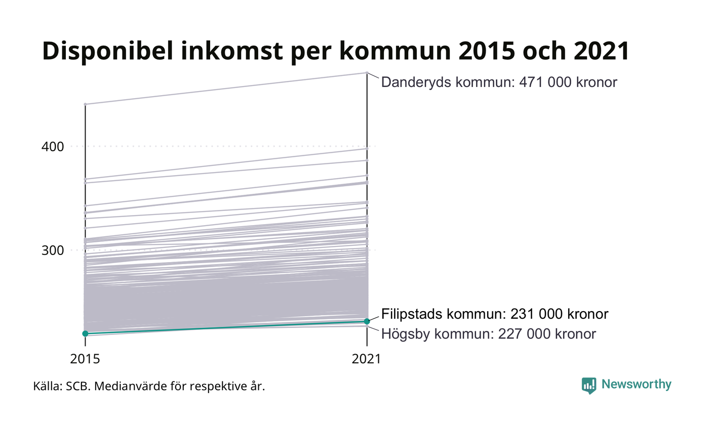 I Filipstad norra var medianinkomsten 250 200 kronor, i Kalhyttan-centrum 191 500.