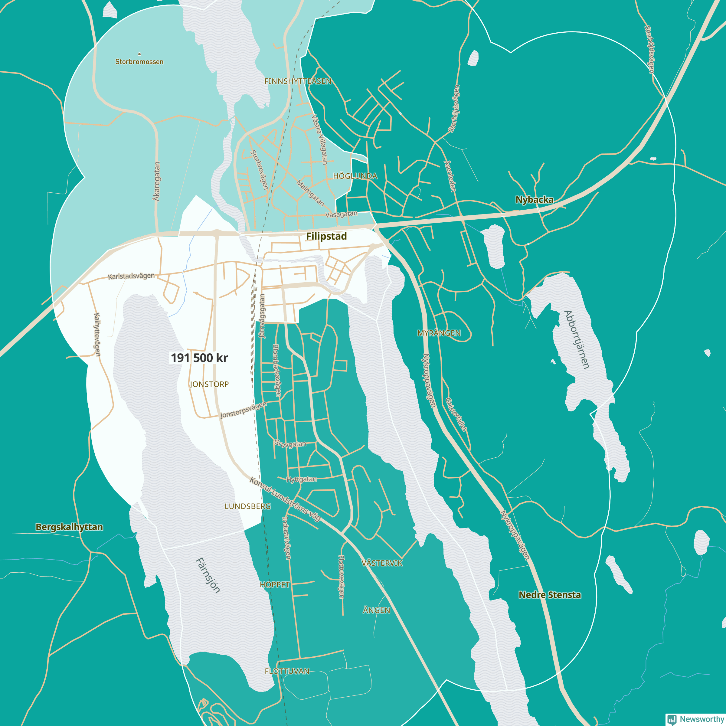 Filipstad | Kalhyttan-centrum | 191 500 | Filipstad norra | 250 200 |