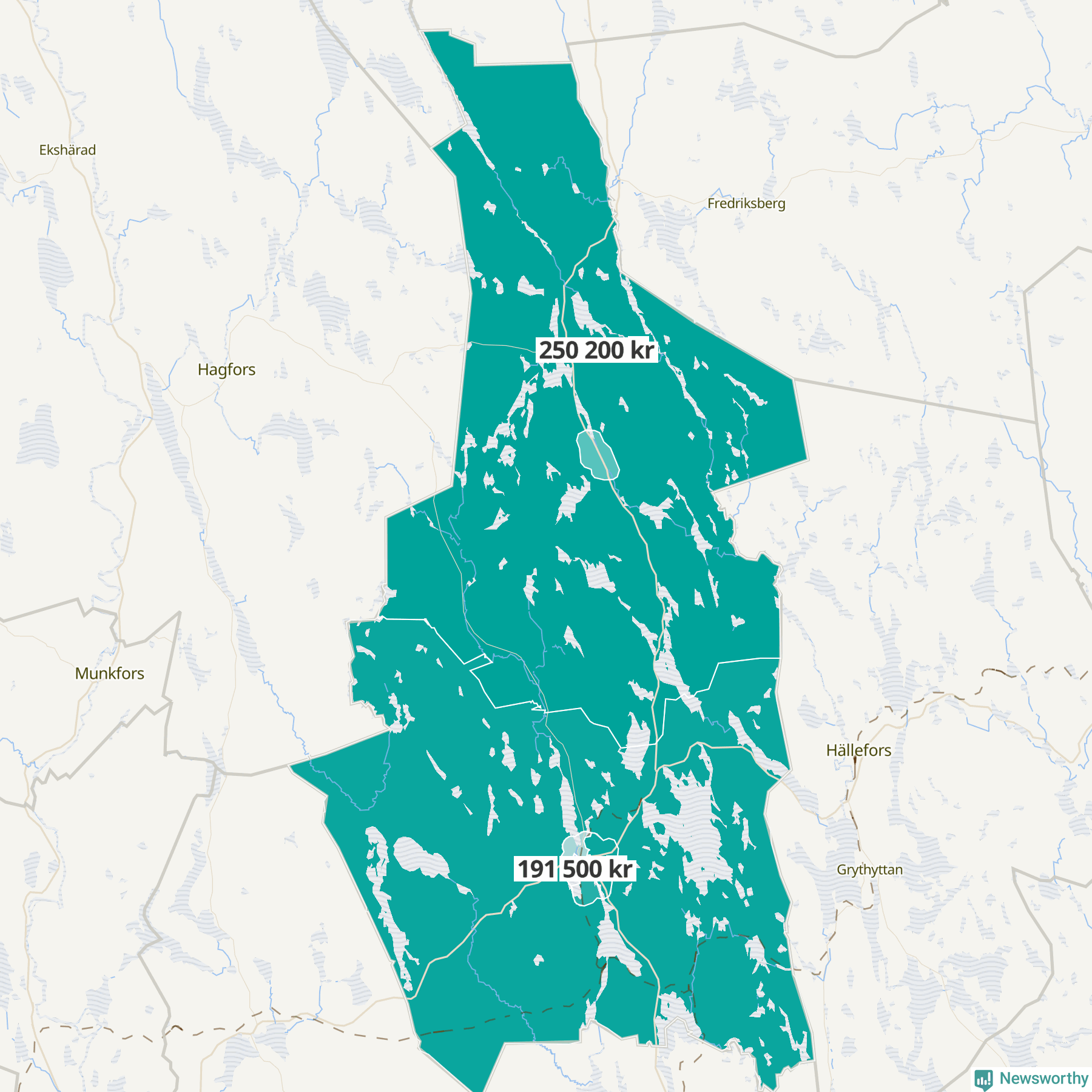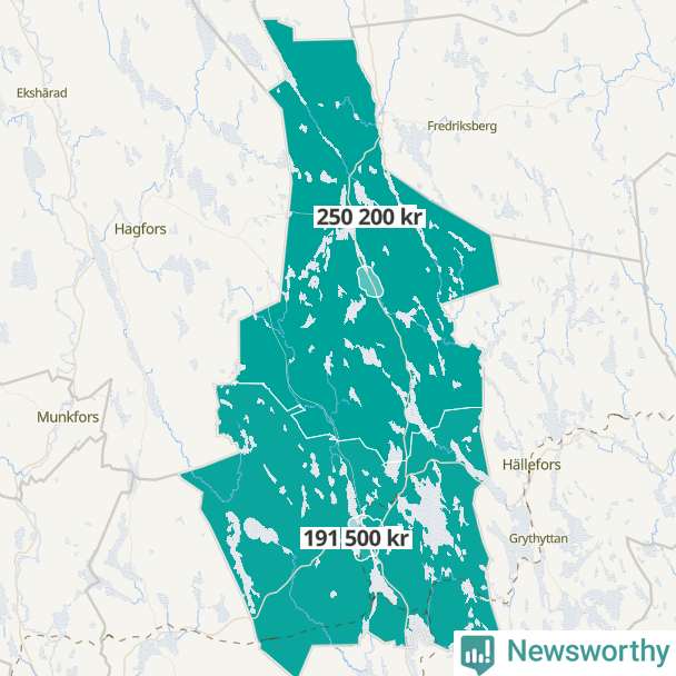 Grums | Orrby-Grönberg | 224 700 | Borgvik-Värmskog-Skruvstad | 279 000 |